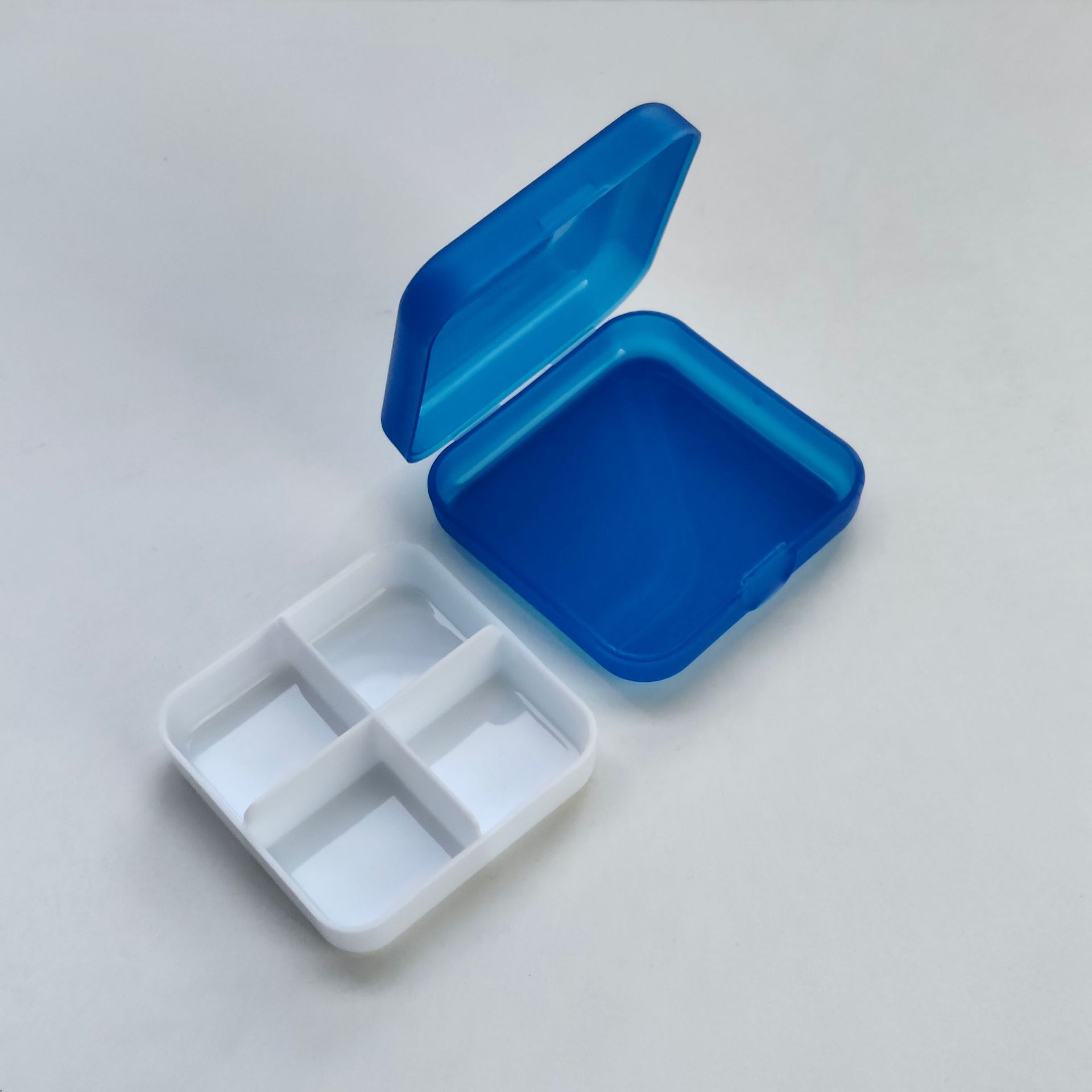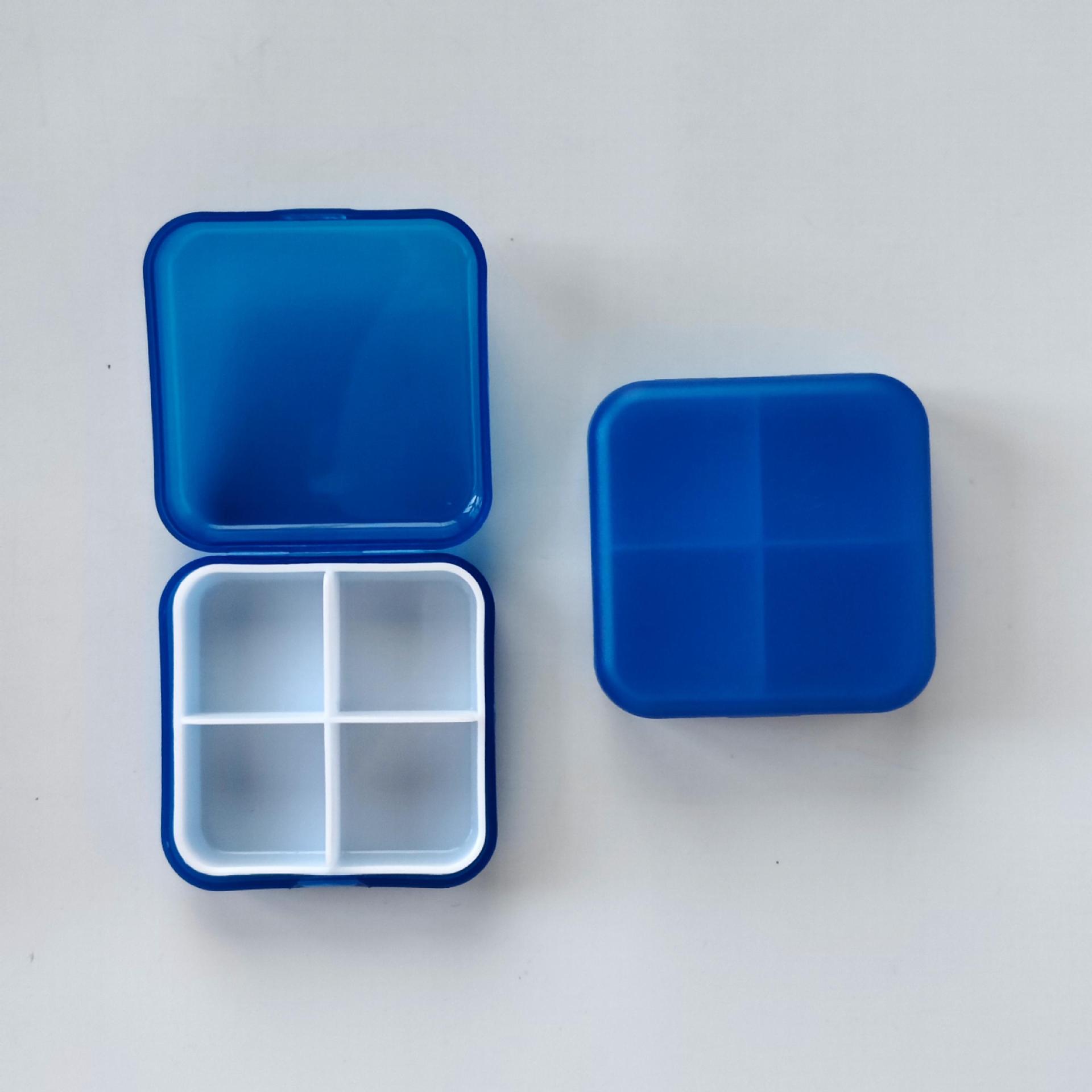 正方形4格1天药盒 带盒子4格药盒 可分离4格药盒 翻盖4格1日药盒