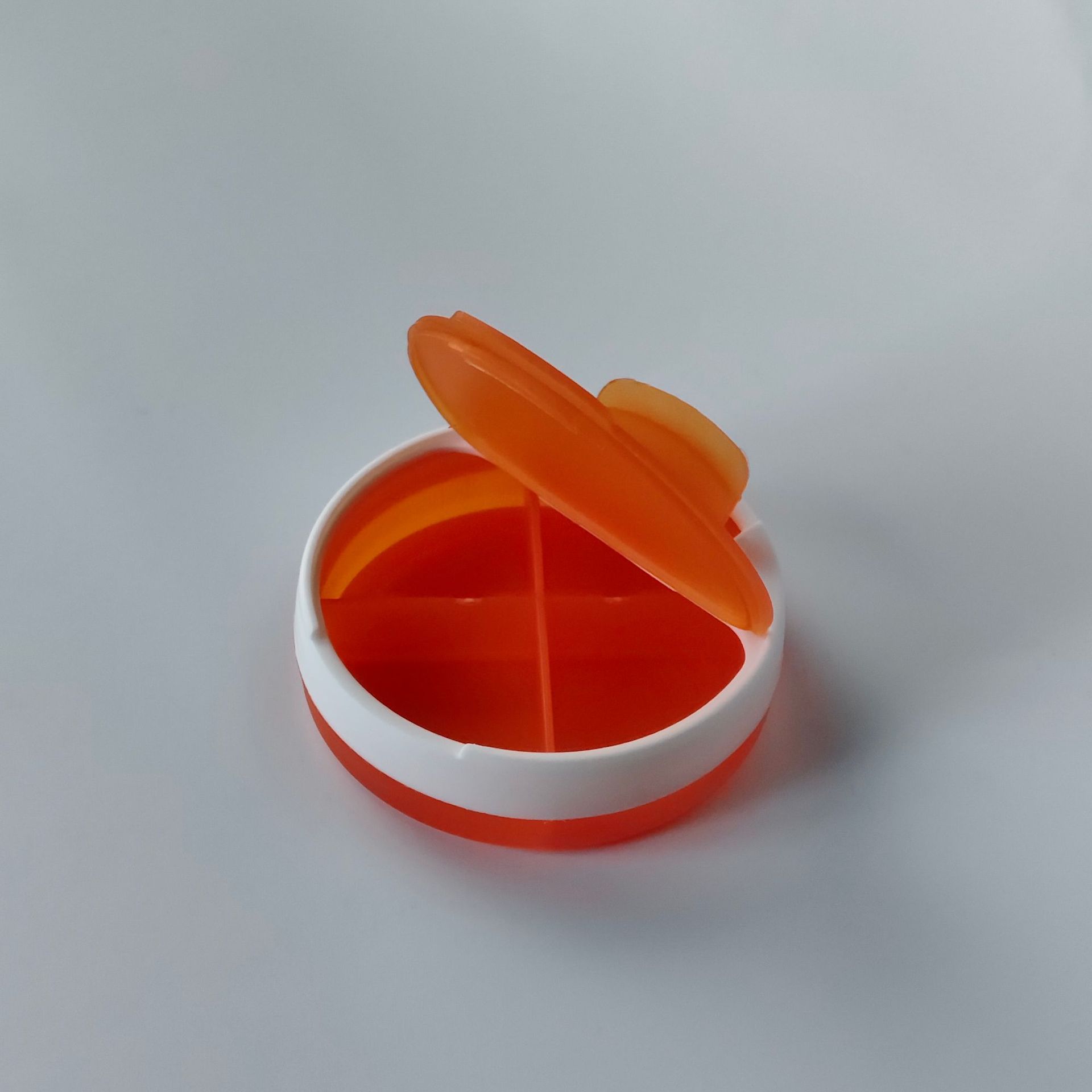工厂直销食品级4格药盒 迷你一天药盒 圆形四格药盒 便捷4格一天