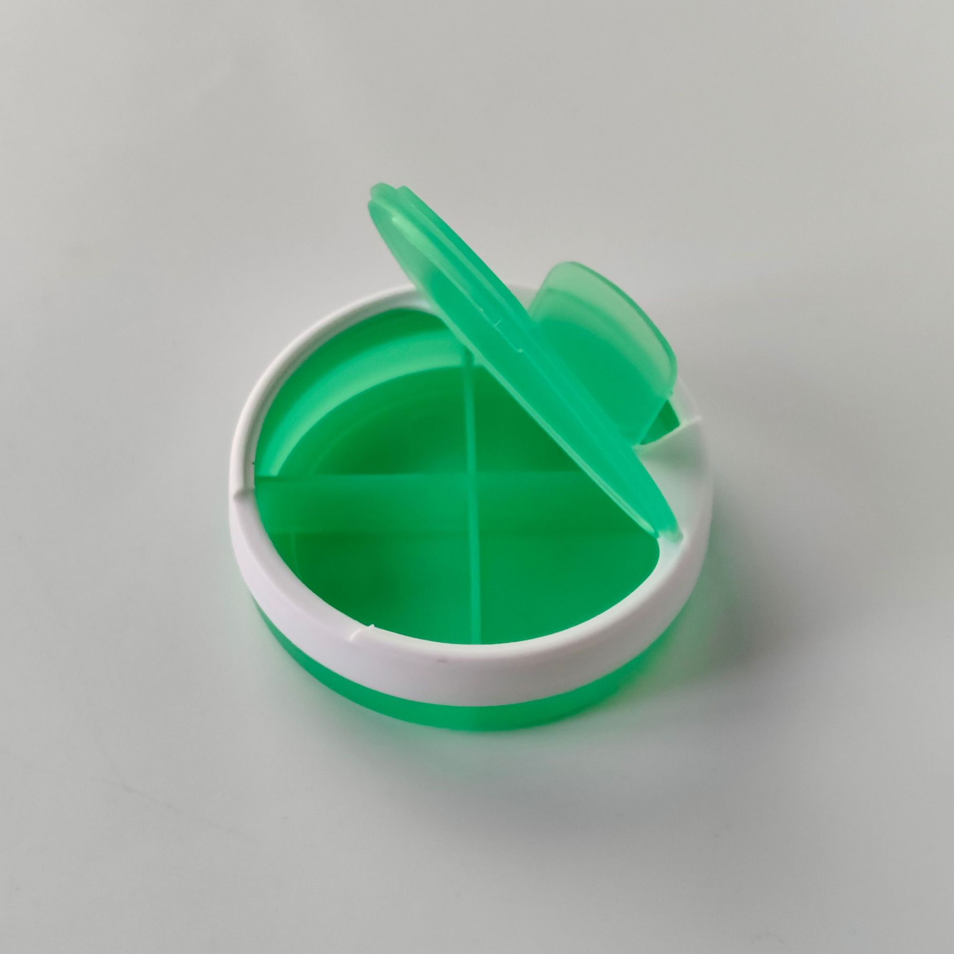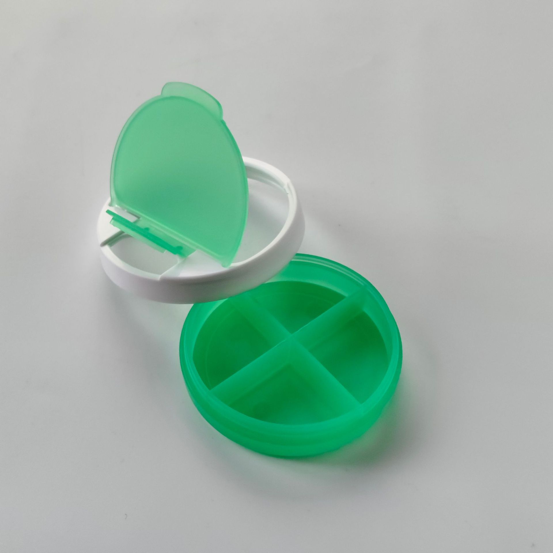热销欧美食品级4格药盒 四格药盒 圆形4格药盒 便捷4格一天药盒