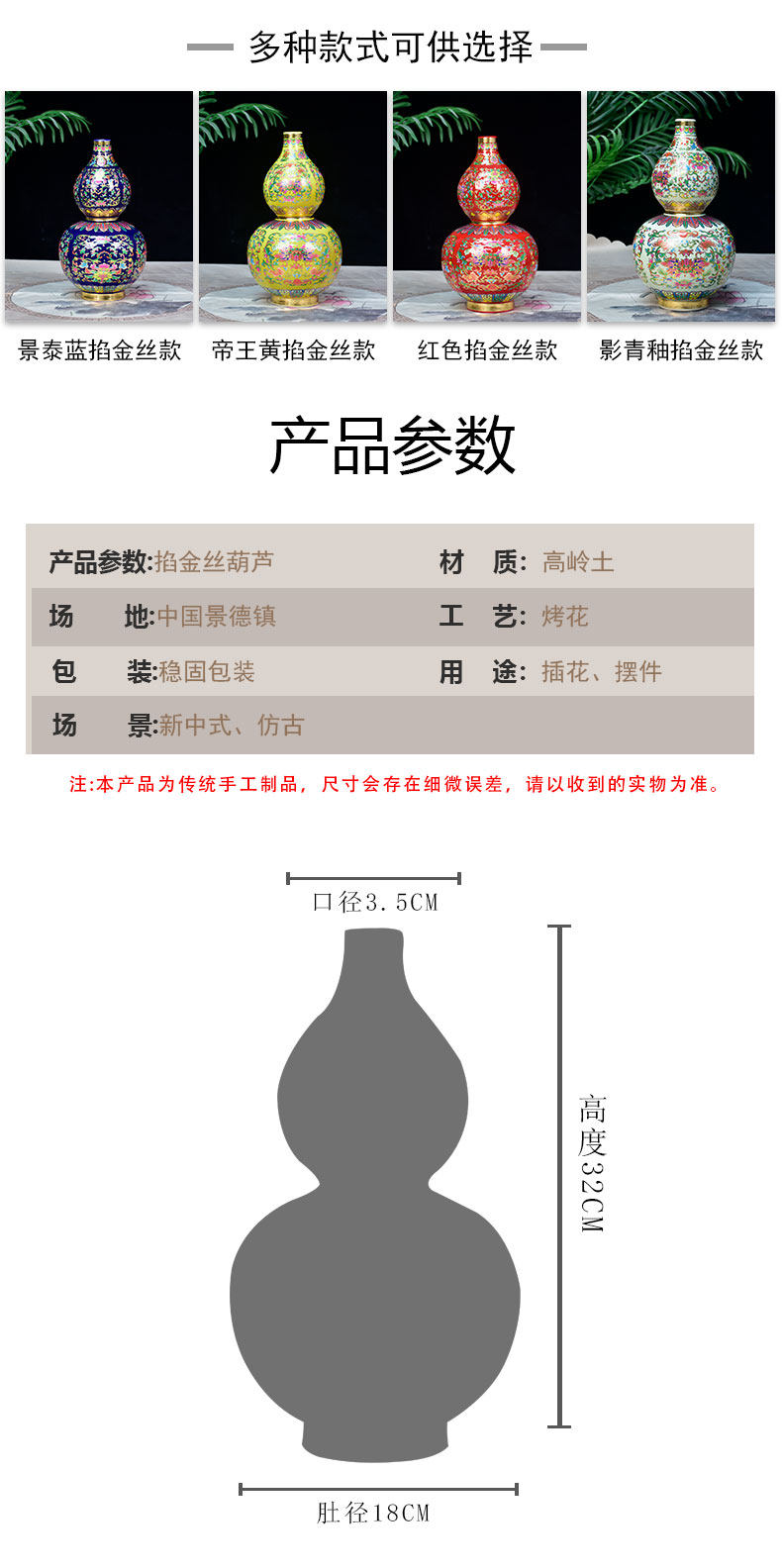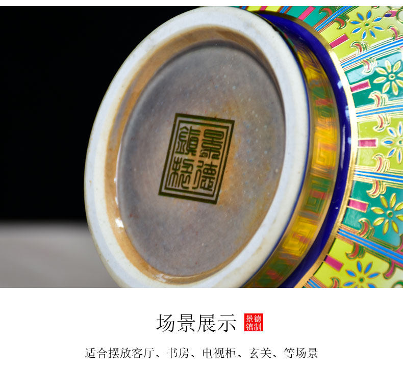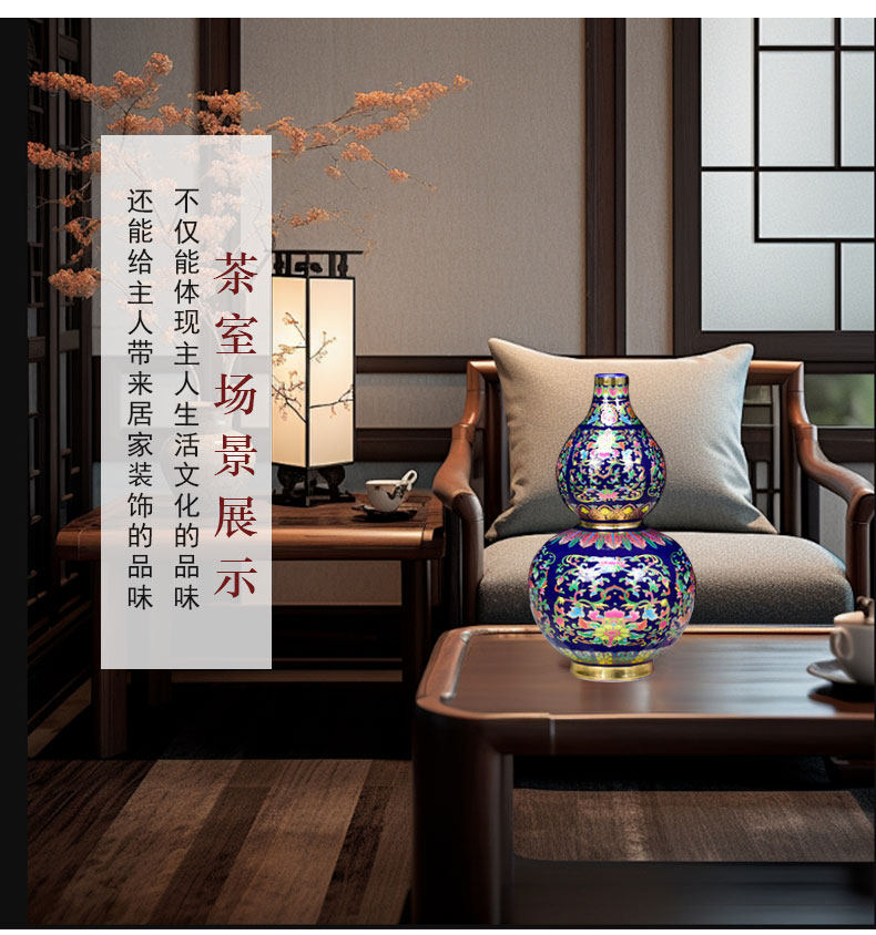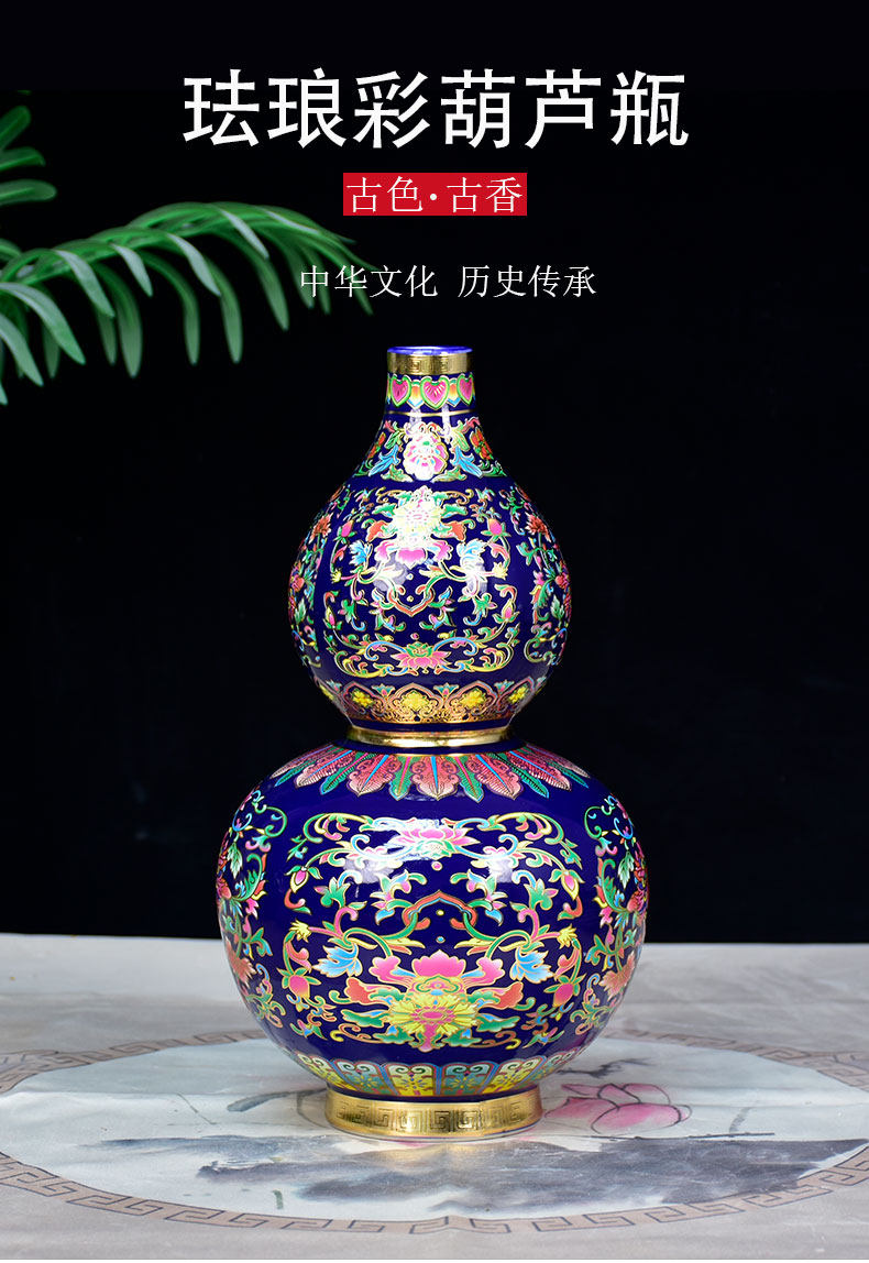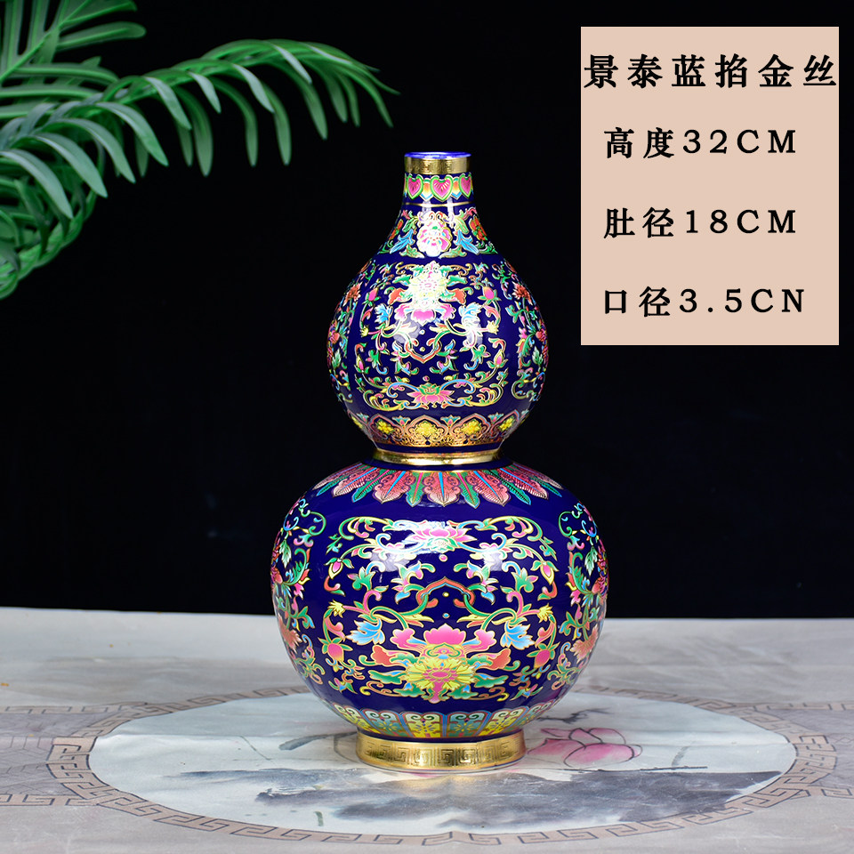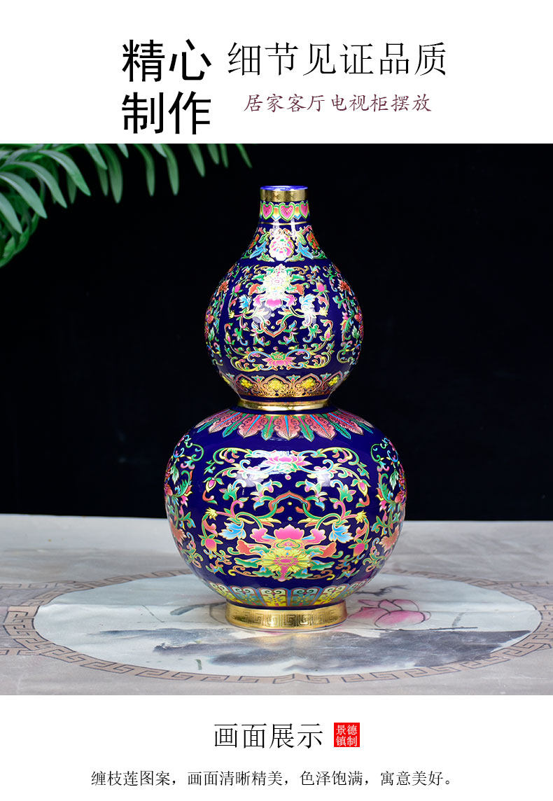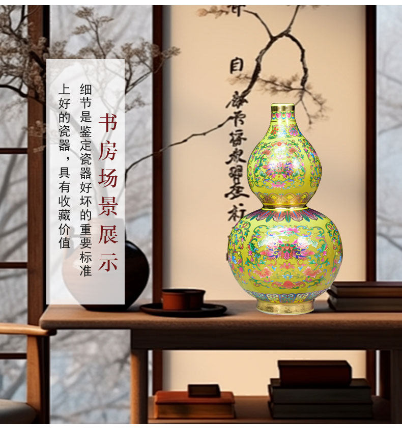 景德镇陶瓷器珐琅彩金花瓶福寿葫芦落地摆件家居客厅玄关摆设装饰 投诉