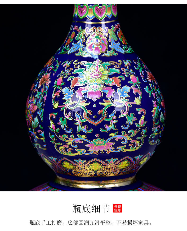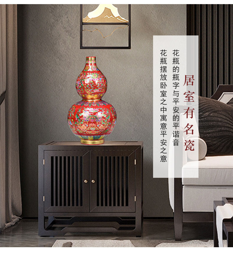景德镇陶瓷器珐琅彩金花瓶福寿葫芦落地摆件家居客厅玄关摆设装饰