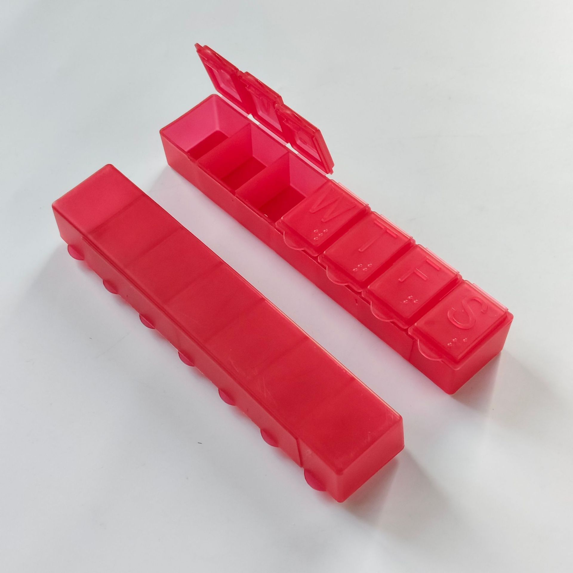 热销美国市场大刻字星期英文字母7格药盒 一周刻字英文字母医药盒