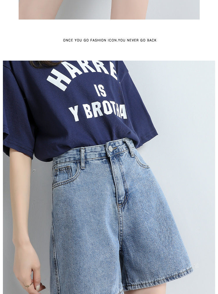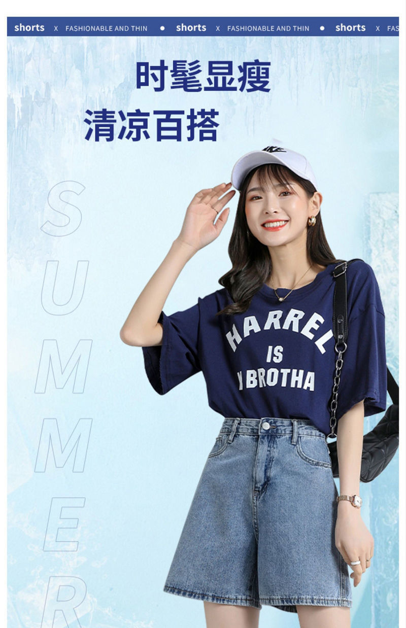 5040高腰牛仔五分女宽松显瘦夏季新款韩版大码阔腿百搭a字中裤 投诉