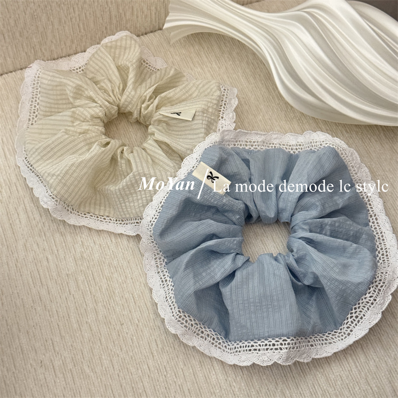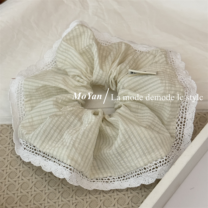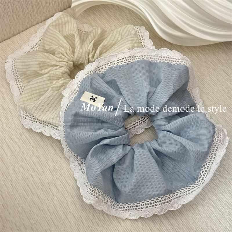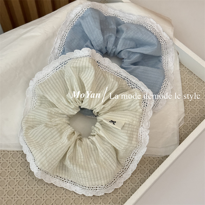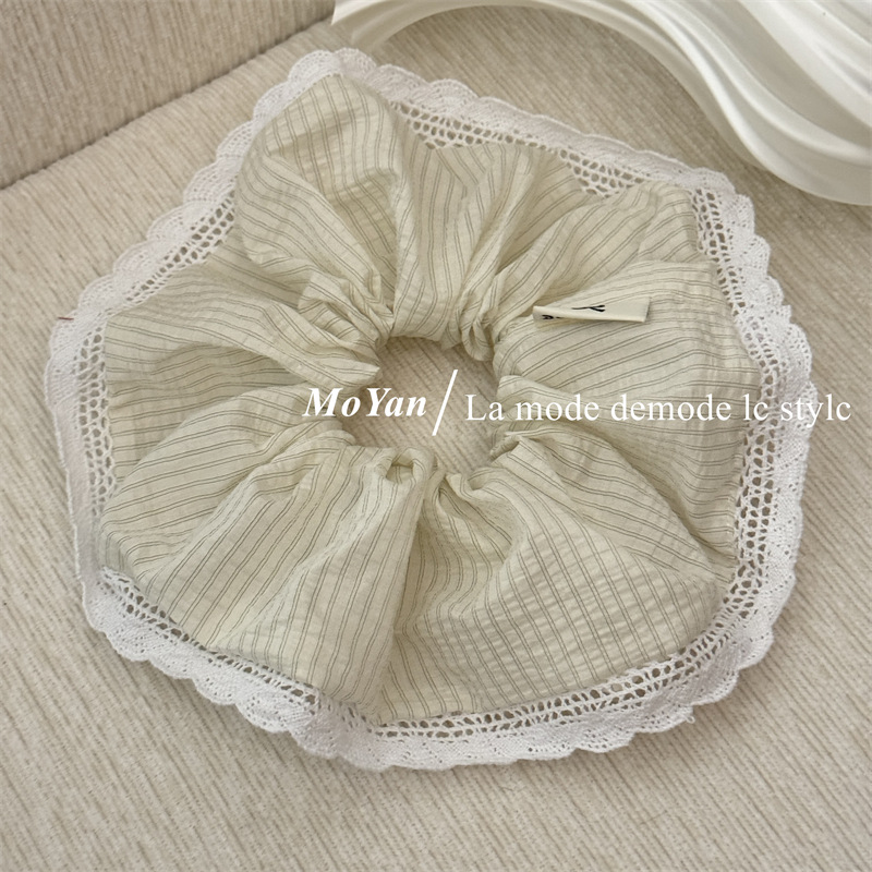 韩版针织花边大肠发圈条纹百搭气质马尾头绳大号高级感发绳女头花