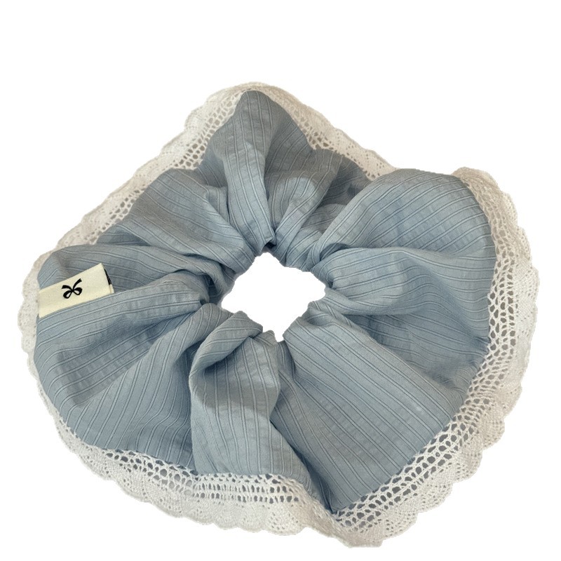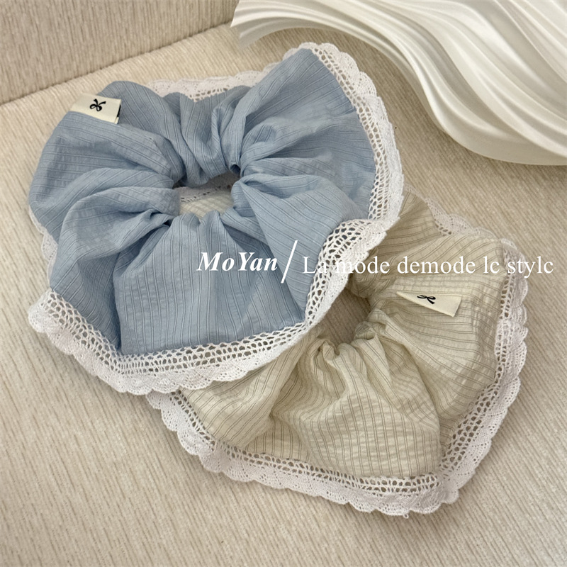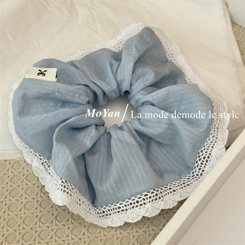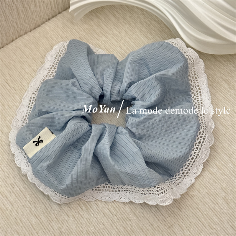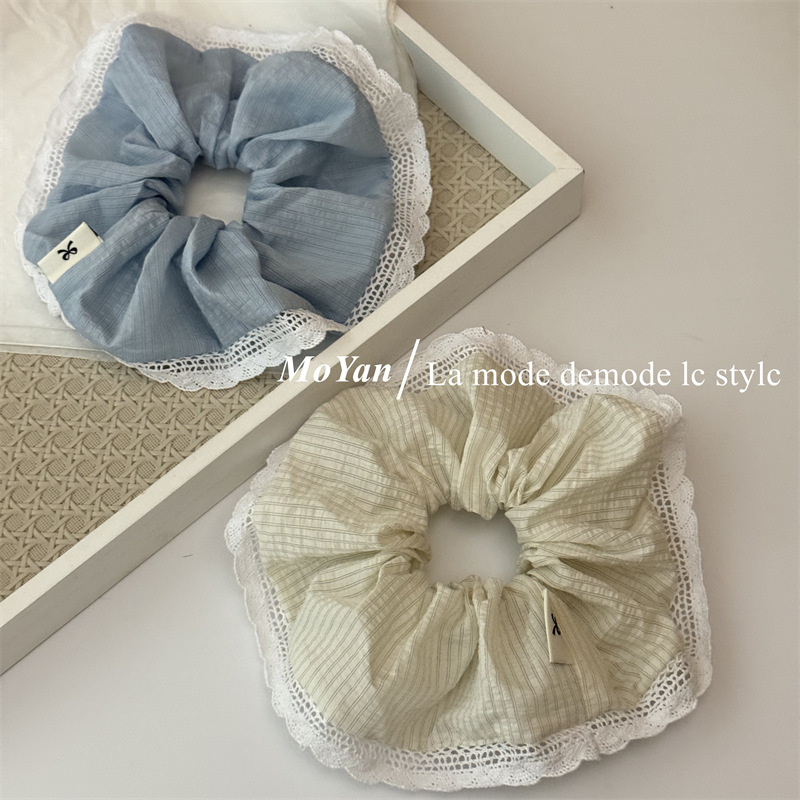 韩版针织花边大肠发圈条纹百搭气质马尾头绳大号高级感发绳女头花