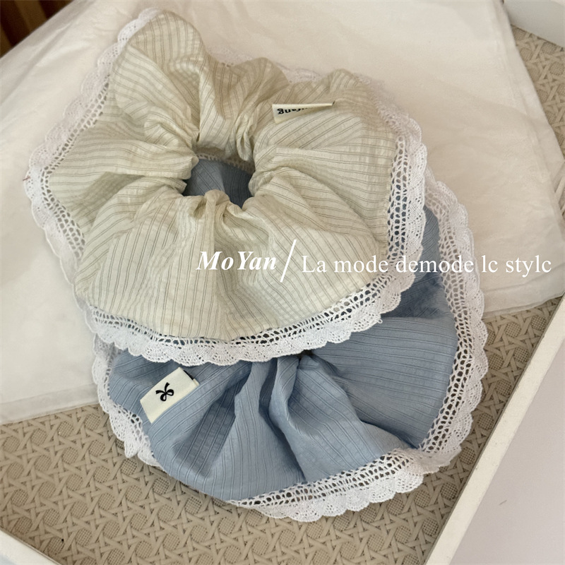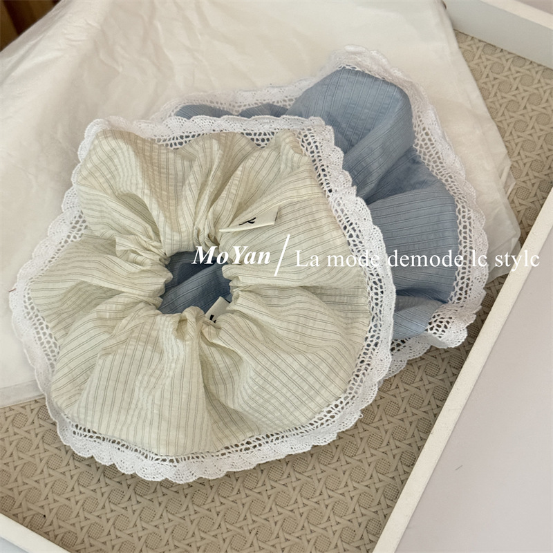 韩版针织花边大肠发圈条纹百搭气质马尾头绳大号高级感发绳女头花 投诉