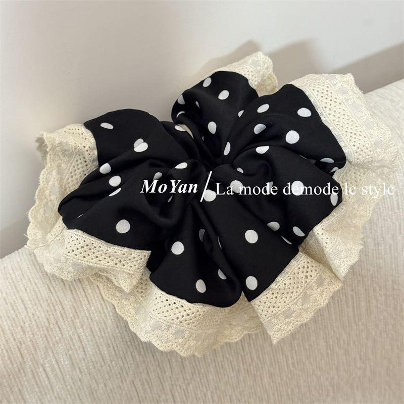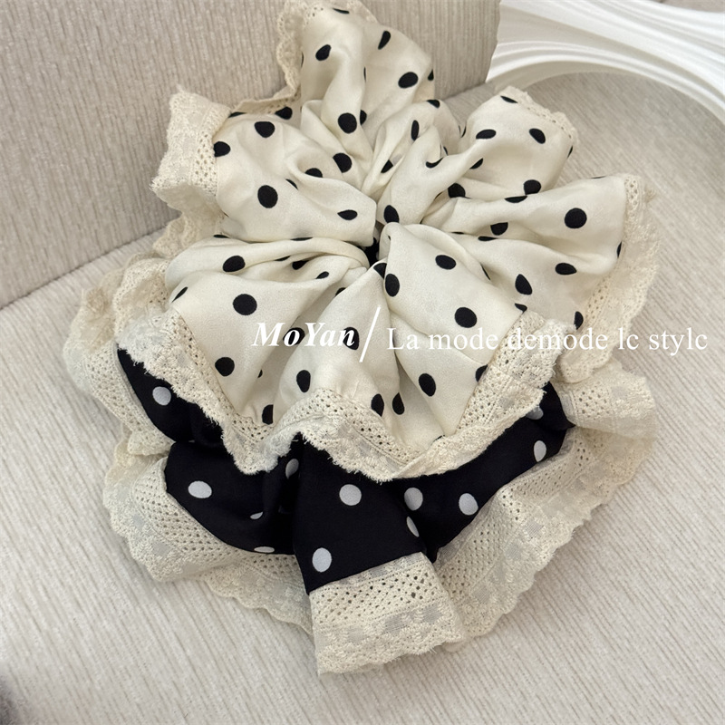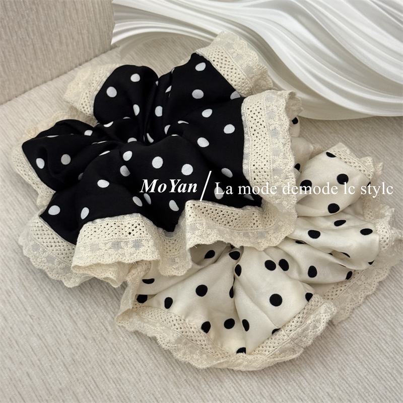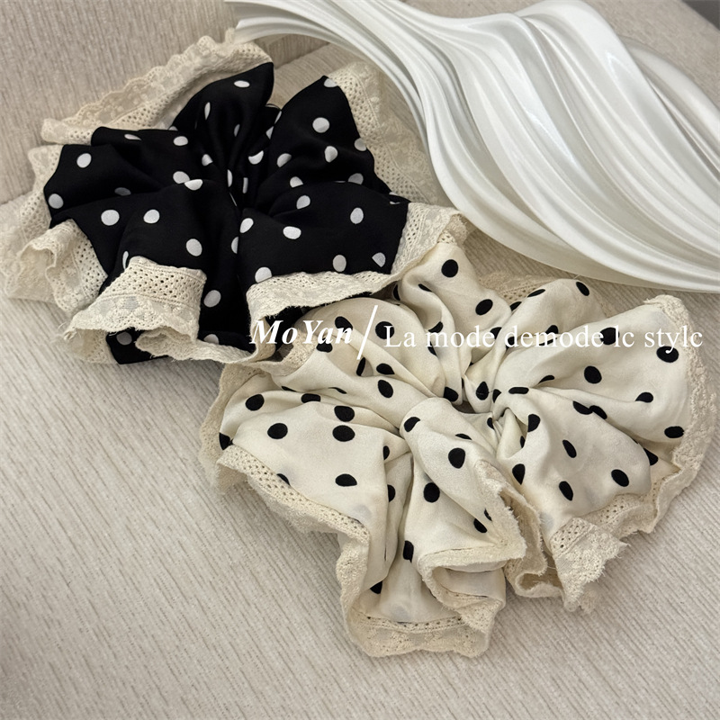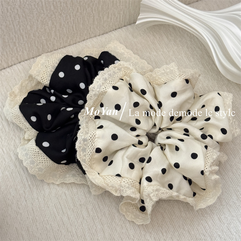 韩版波点蕾丝花边大肠发圈气质丸子头发绳不伤发头绳复古百搭头花