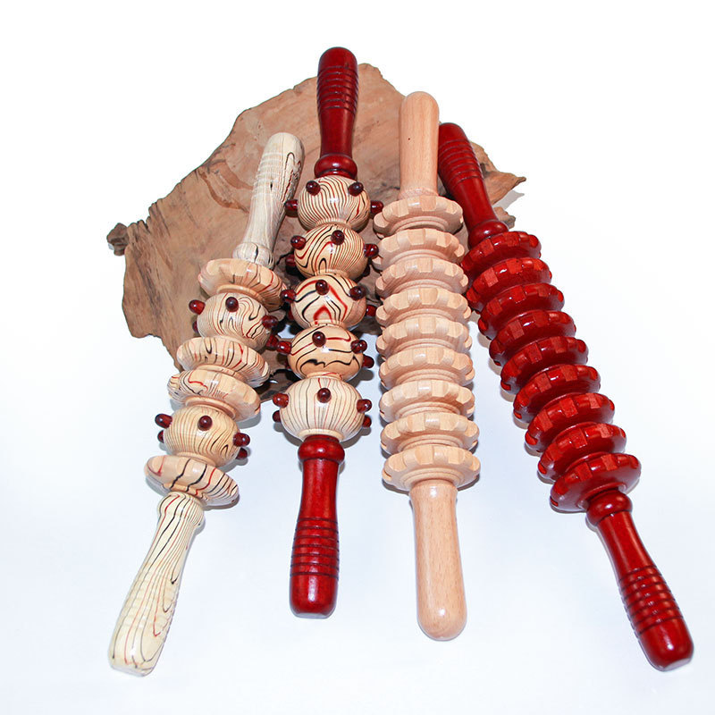 实木按摩棒九轮十二轮木制按摩器滚轮按摩器腿部背部弯柄经络
