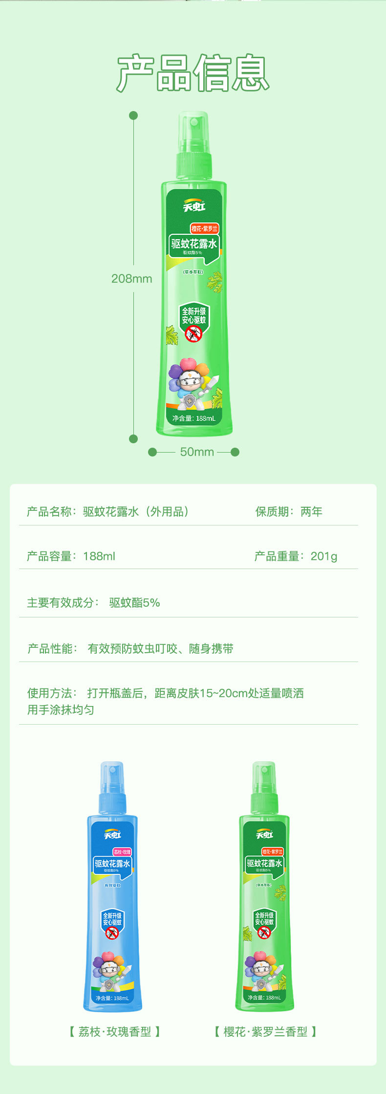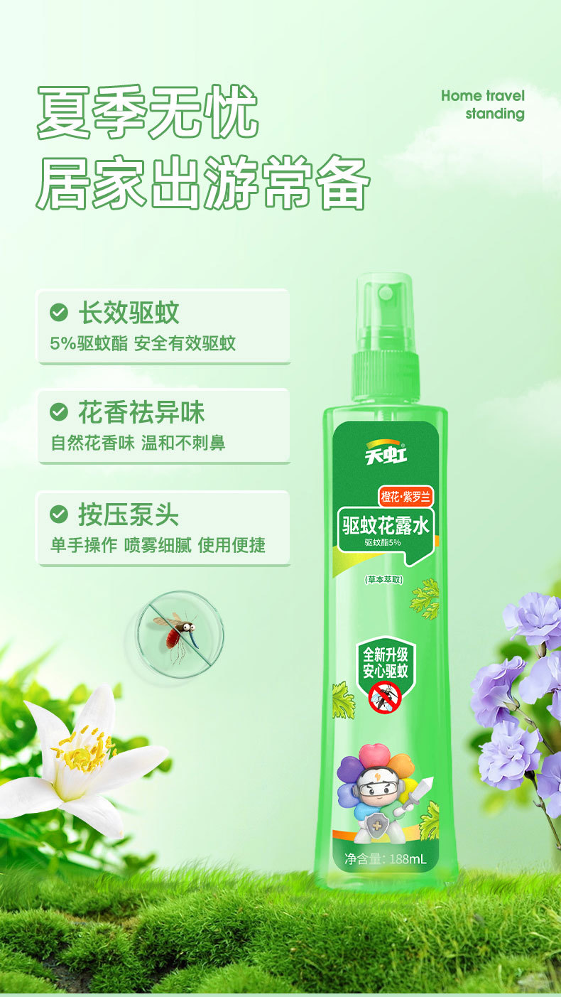 天虹新款驱蚊花露水户外驱蚊液188ml大容量驱蚊喷雾成人儿童通用 English | 投诉