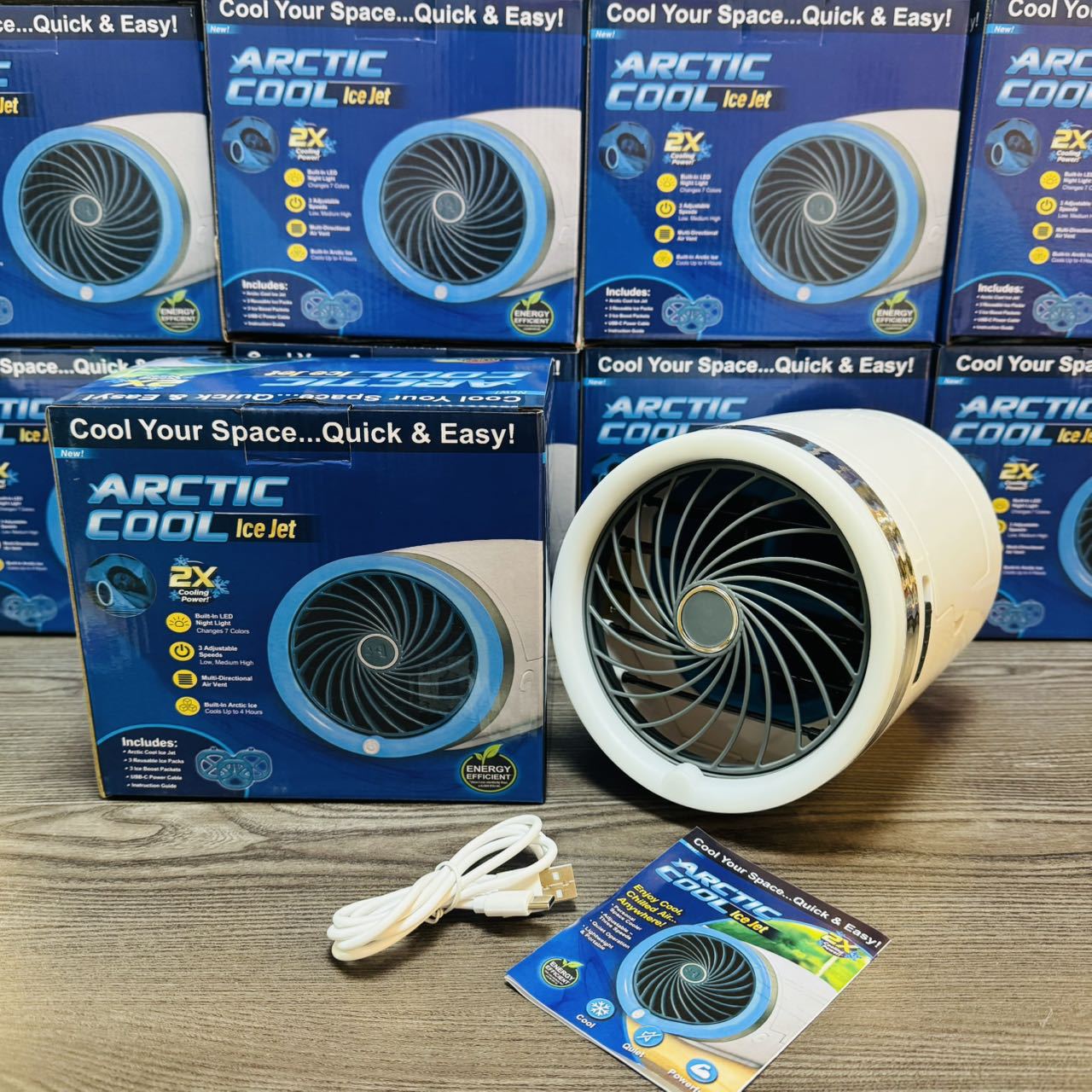 产品描述:冰壶注水后冷冻后入冷风机内冰壶槽,水箱注水,出风更凉爽,配三个冰壶,七彩炫灯