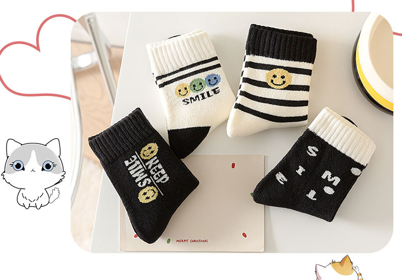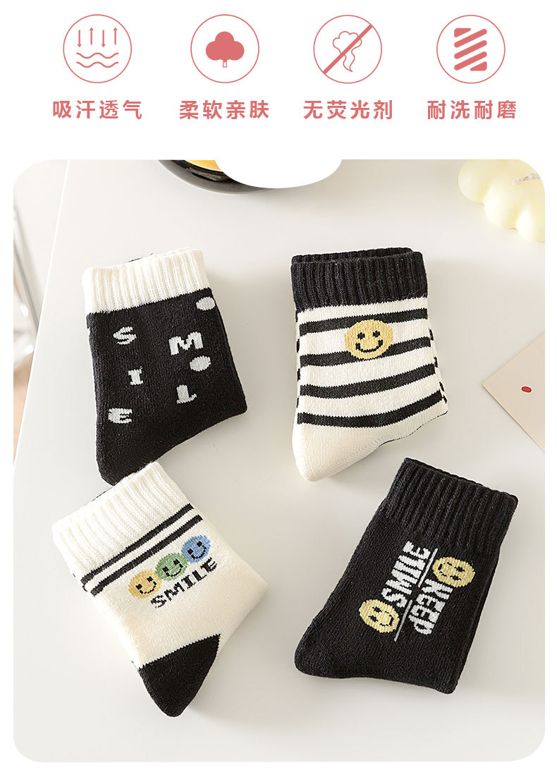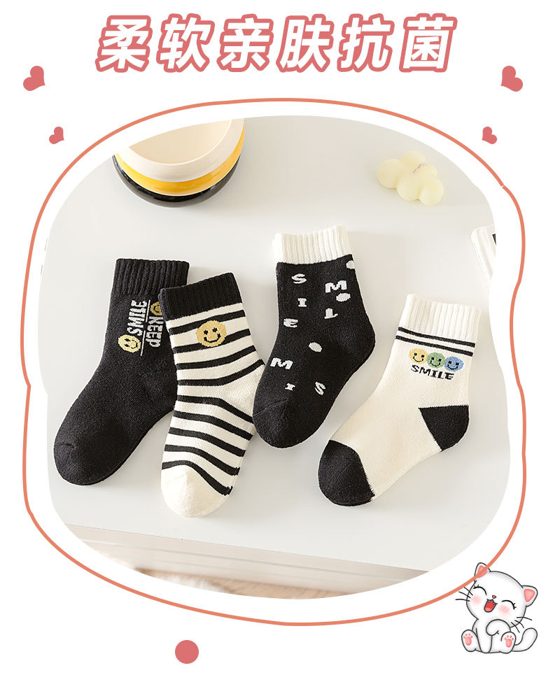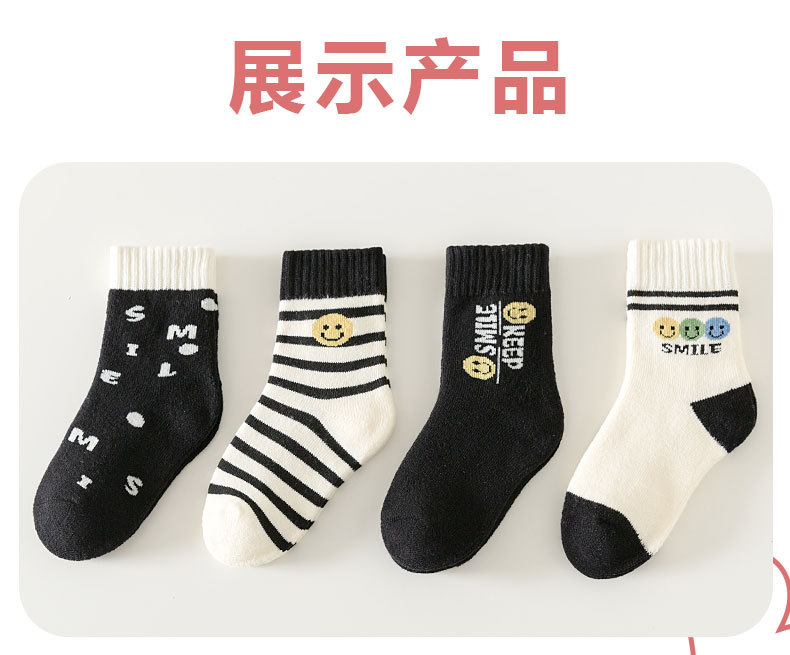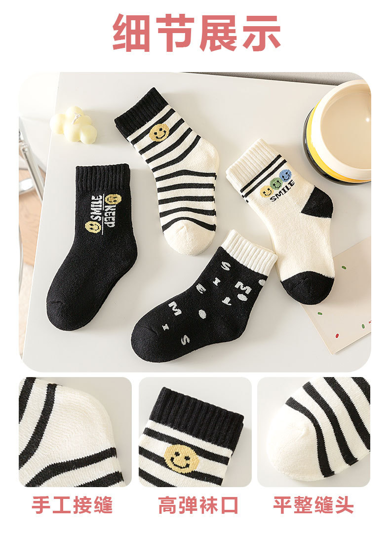 冬季加绒儿童毛圈袜卡通笑脸条纹中筒袜可爱男女童柔软保暖棉童袜 投诉