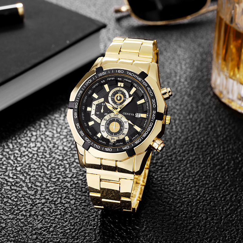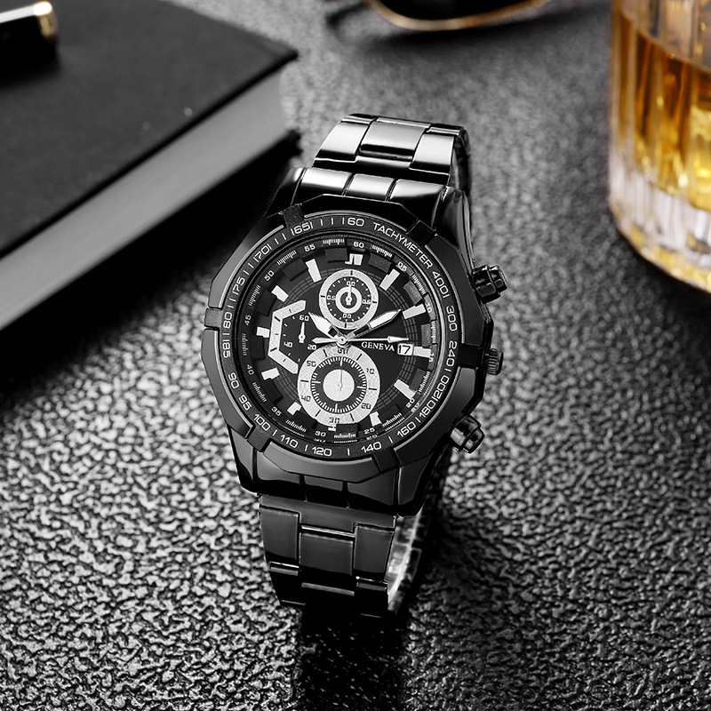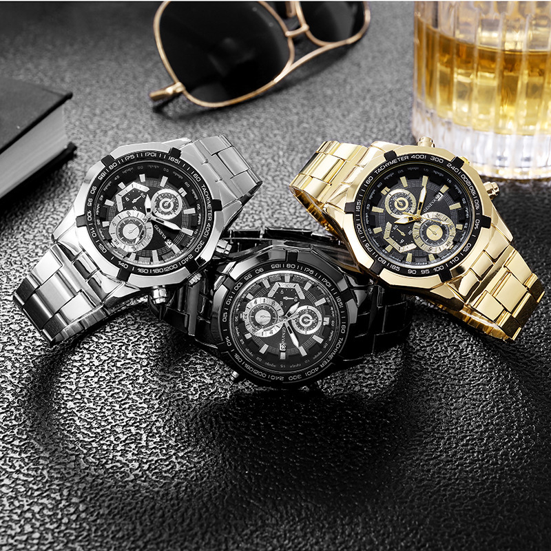 钢带手表 运动休闲石英表日历新款男士手表商务男款手表