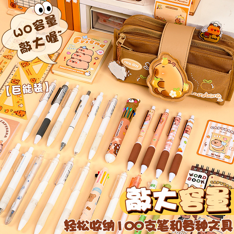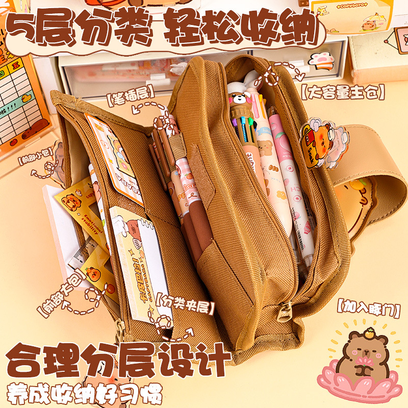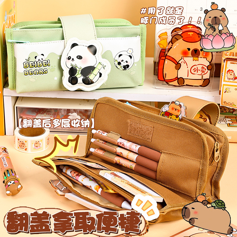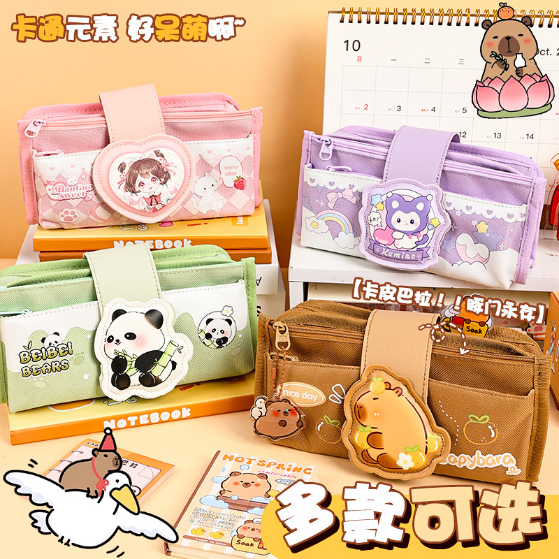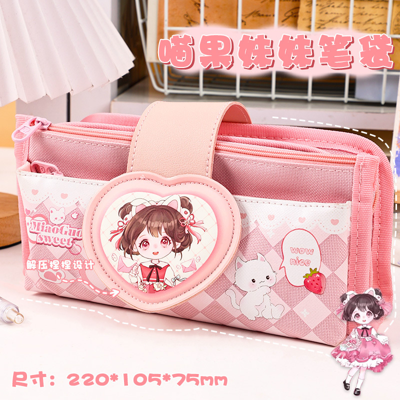 创意解压搭扣布艺笔袋多层大容量可爱奶呼呼高颜值铅笔袋学生收纳