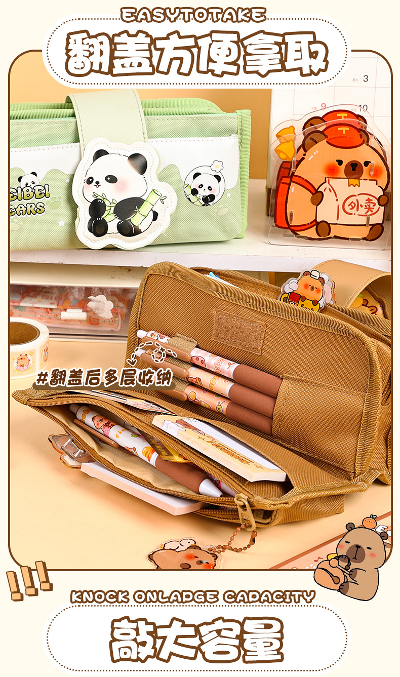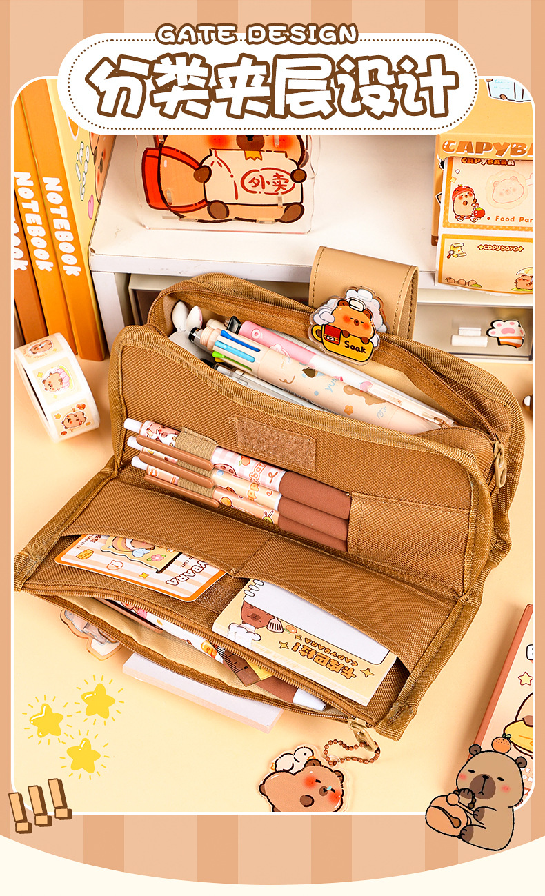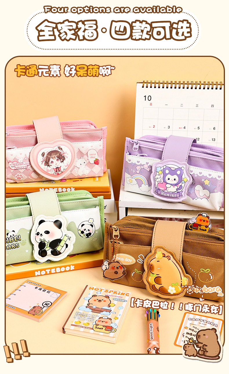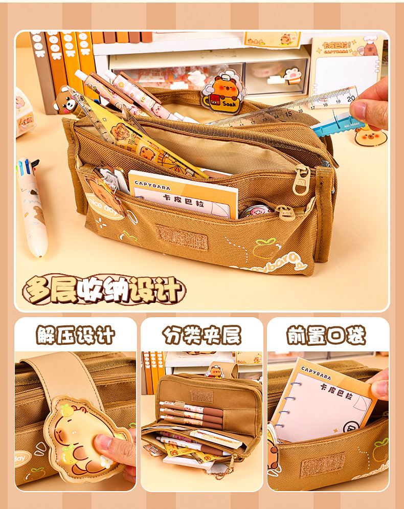 创意解压搭扣布艺笔袋多层大容量可爱奶呼呼高颜值铅笔袋学生收纳 投诉