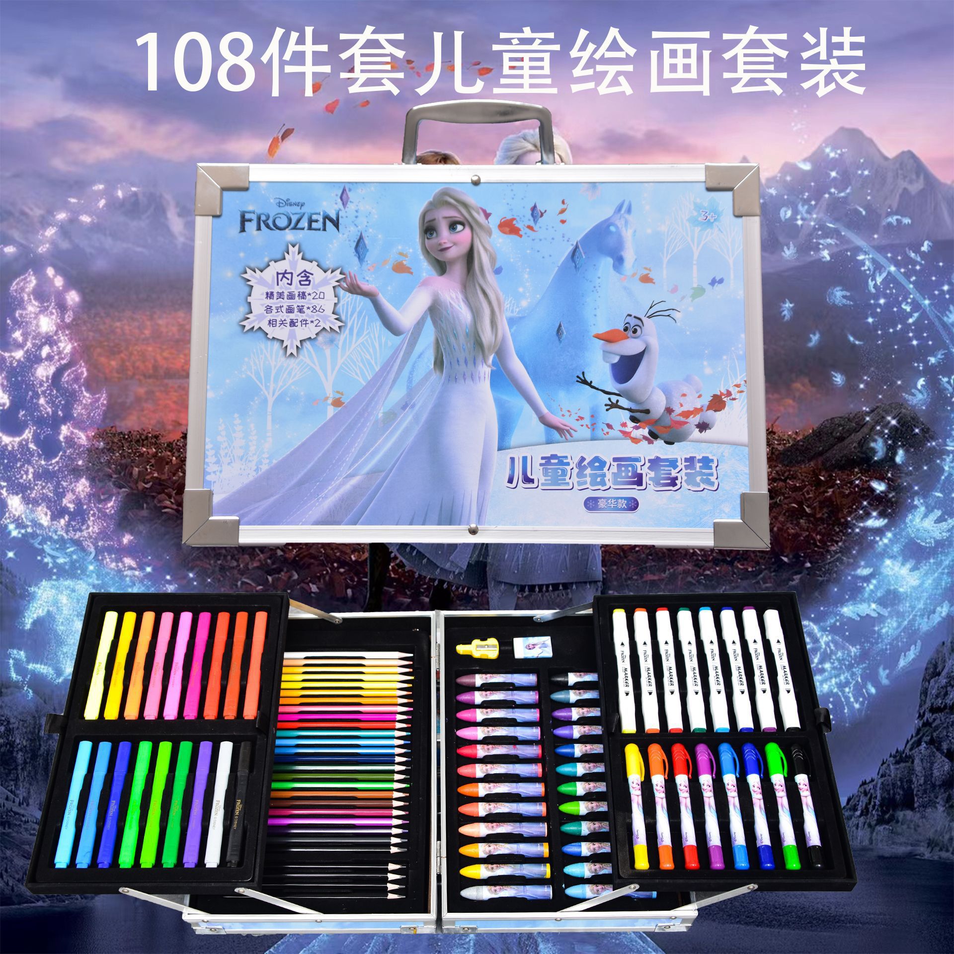 水彩笔儿童108铝盒画笔套装美术文具用品彩笔涂鸦水彩笔厂家批发