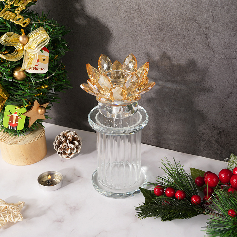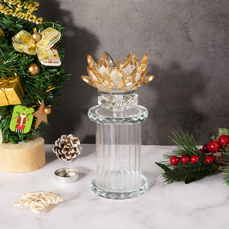 欧式水晶烛台莲花容器家居烛光晚餐餐桌装饰烛台水晶烛台装饰摆件