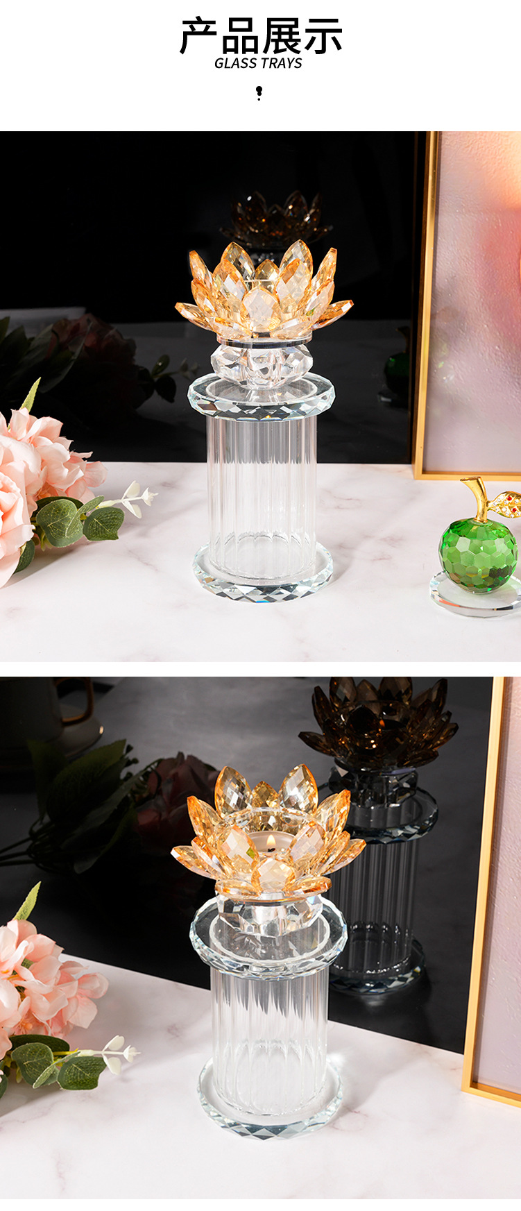 欧式水晶烛台莲花容器家居烛光晚餐餐桌装饰烛台水晶烛台装饰摆件 投诉