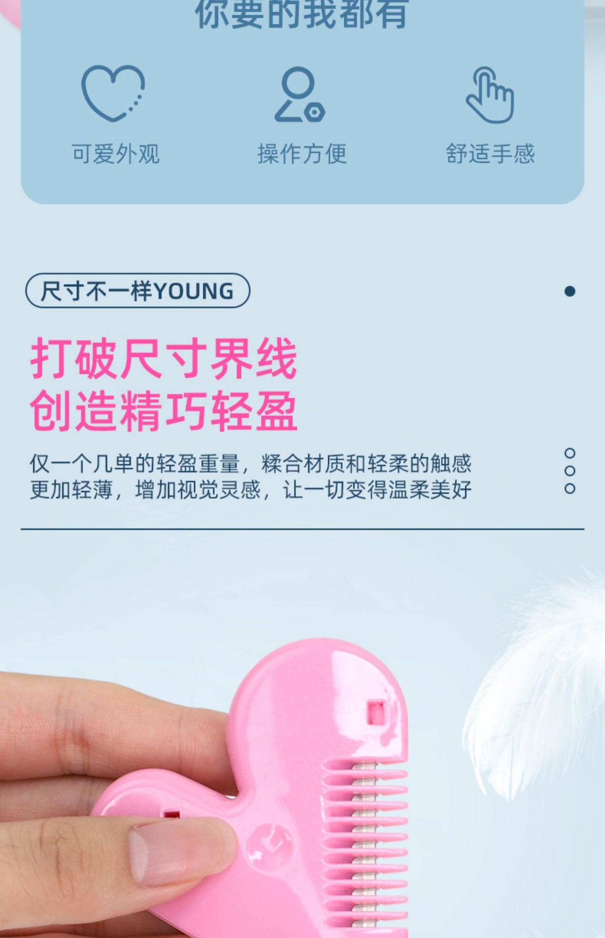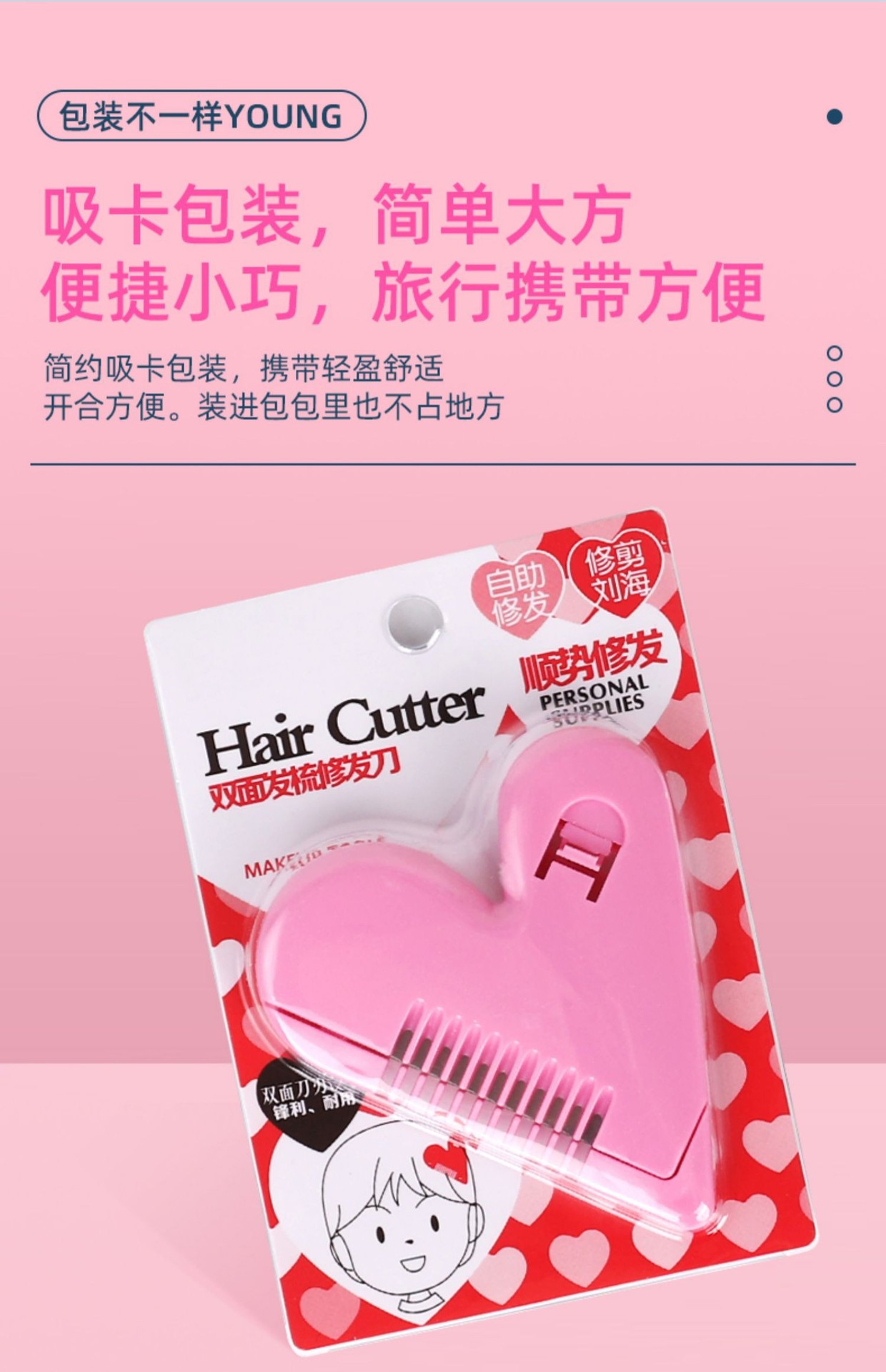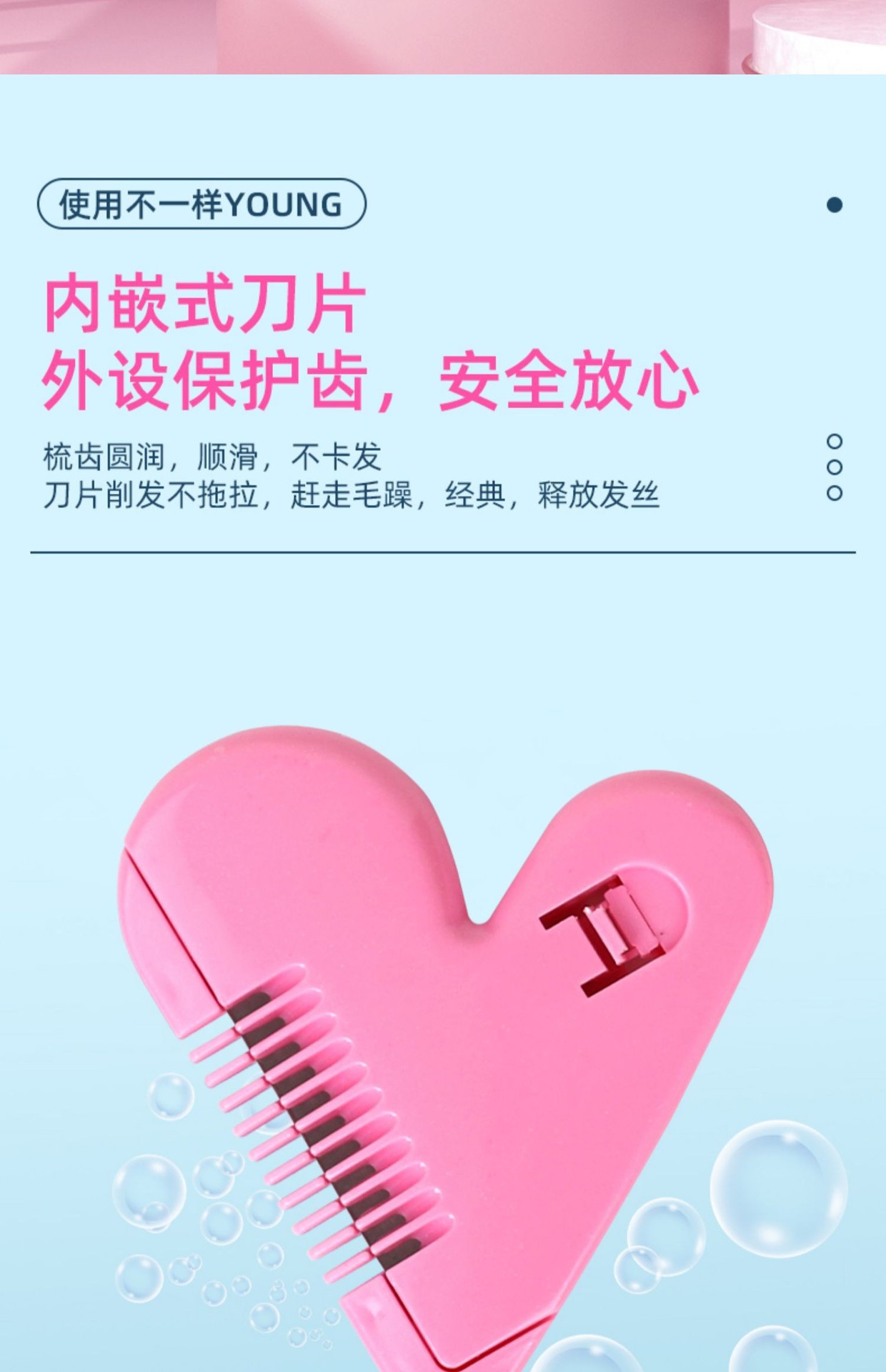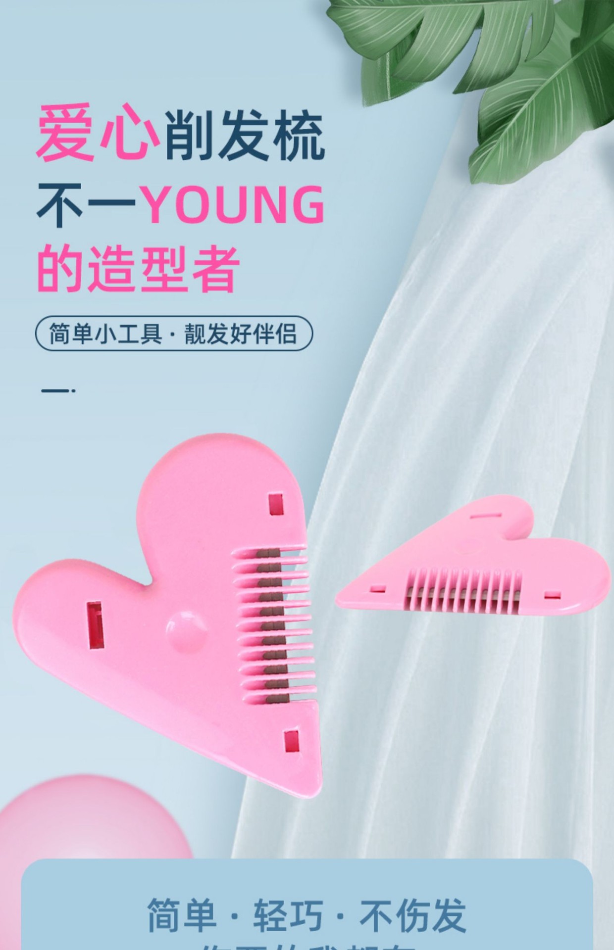新款爱心削发梳剪刘海神器家用儿童女学生安全理发碎发分叉打薄梳 投诉