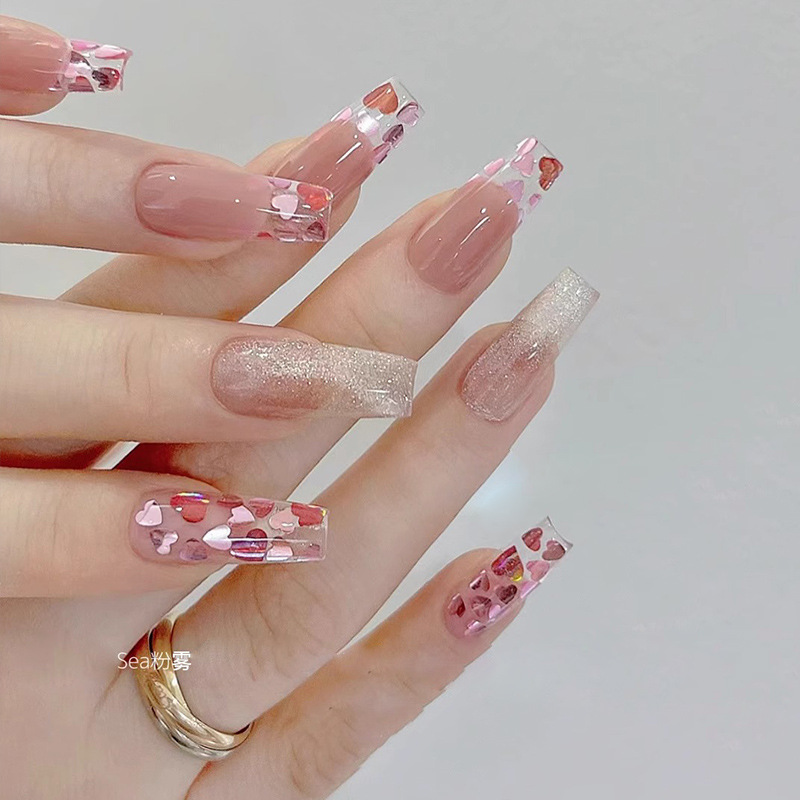 跳动的心特调美甲亮片粉色爱心星芒网红爆闪美甲材料素材指甲配件