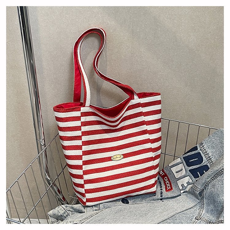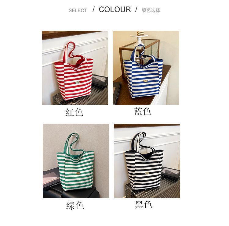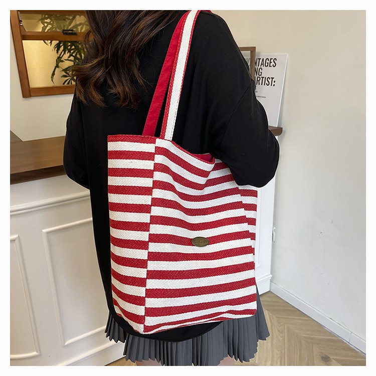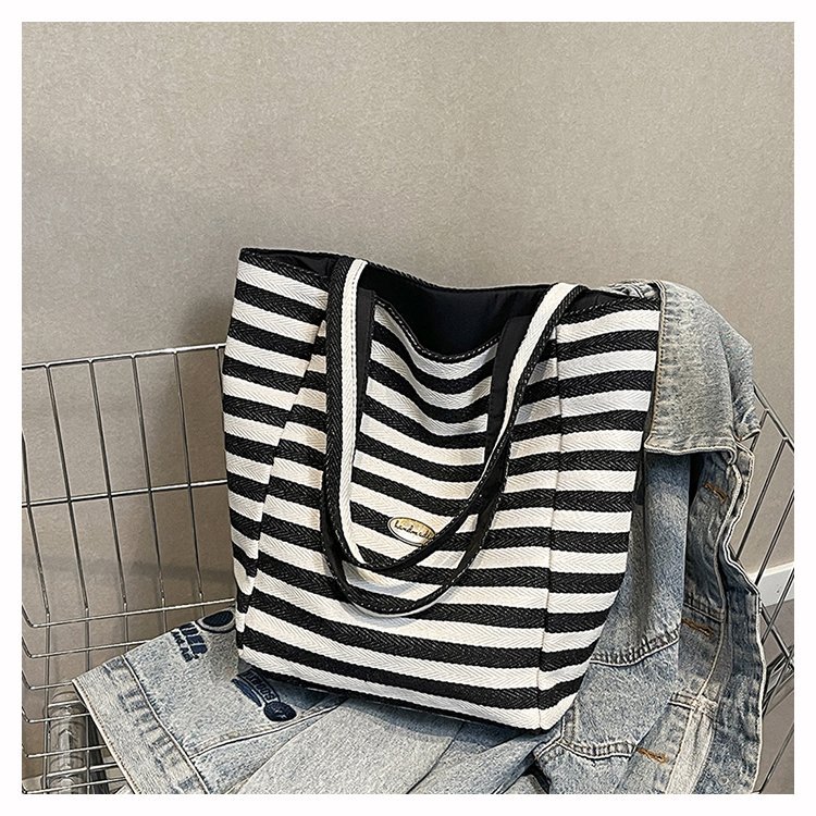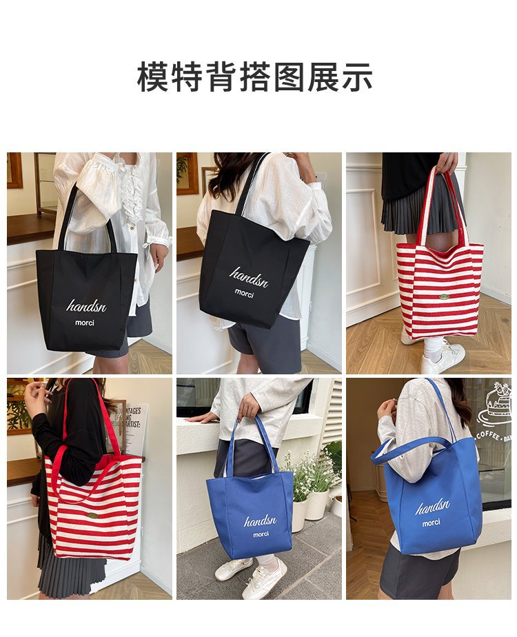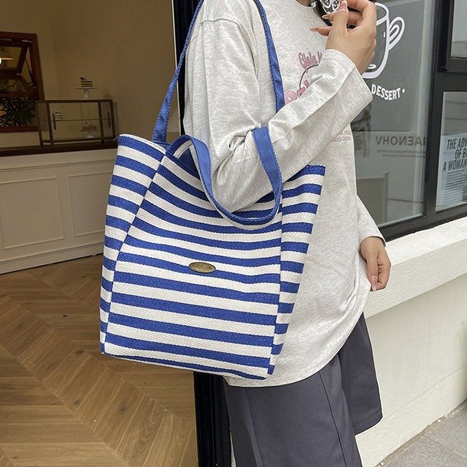 条纹帆布双面可用包新款慵懒风跨境休闲单肩包大容量托特包 English | 投诉