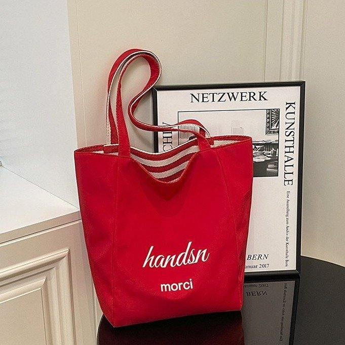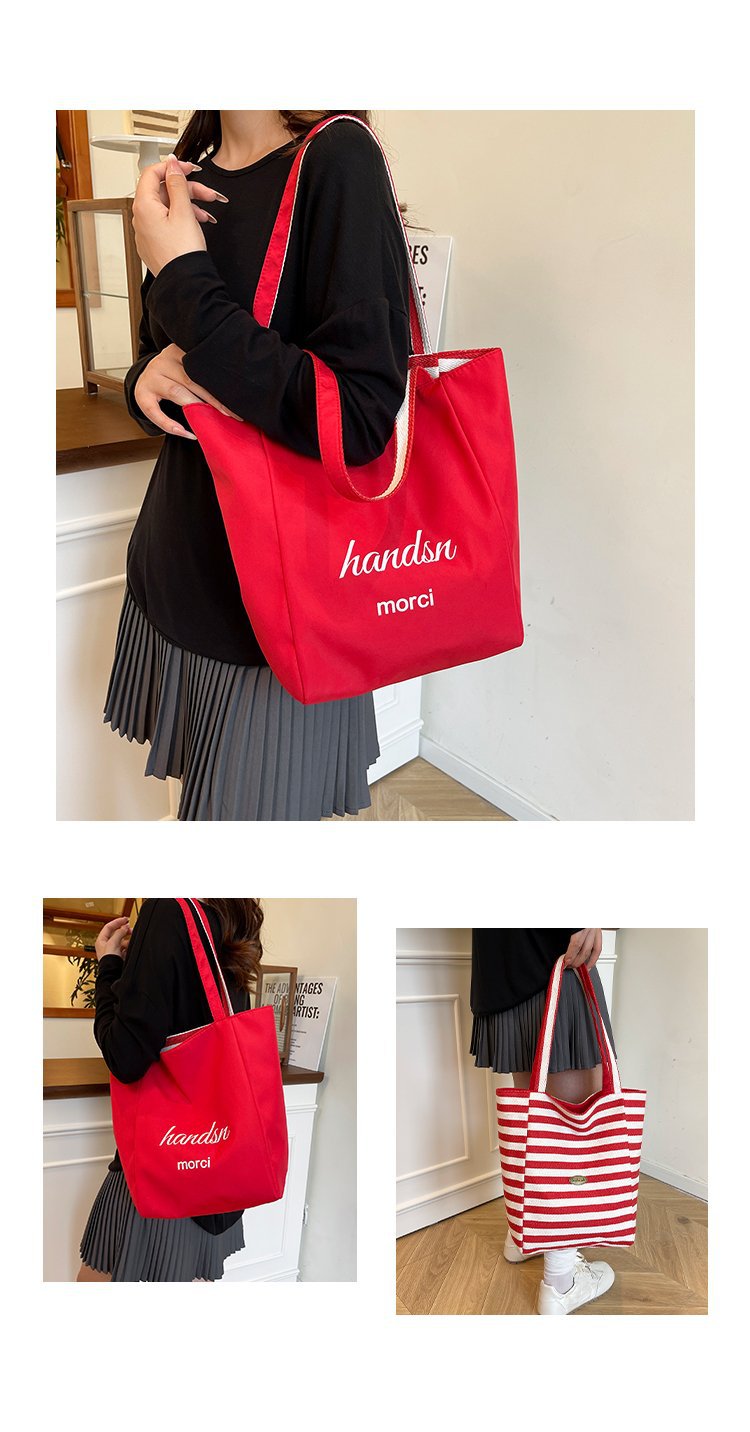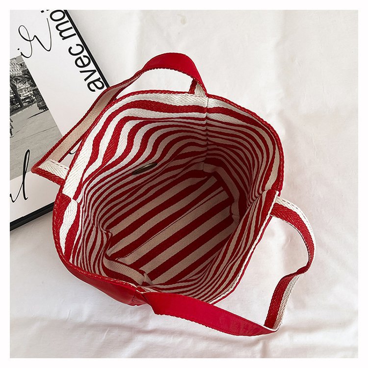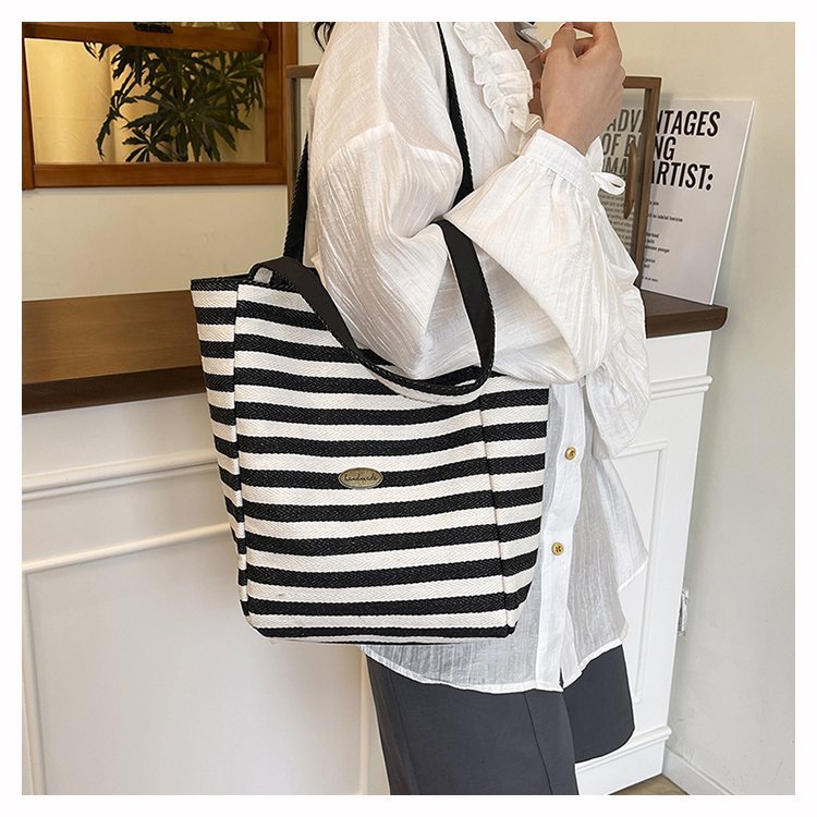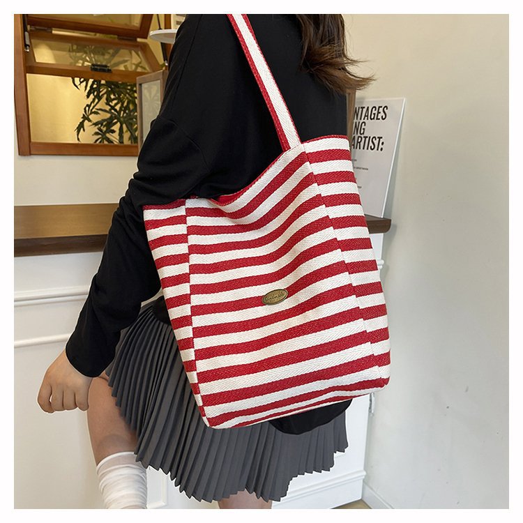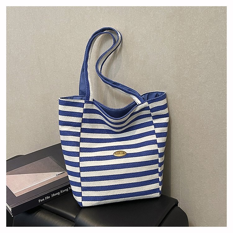 条纹帆布双面可用包新款慵懒风跨境休闲单肩包大容量托特包 English | 投诉