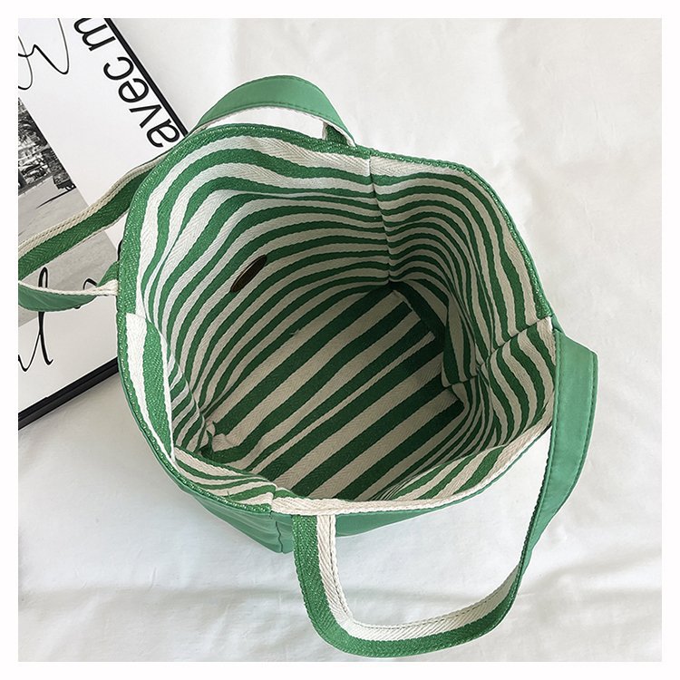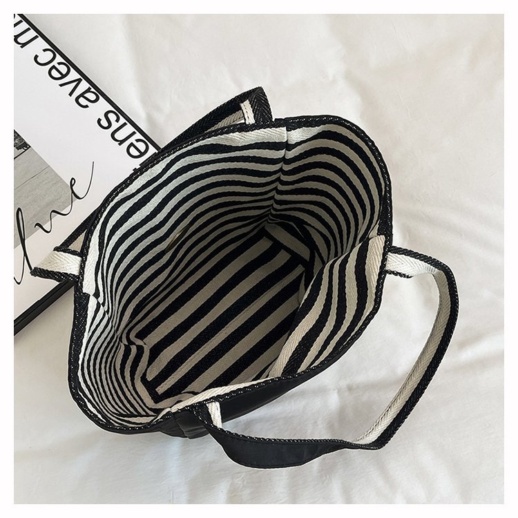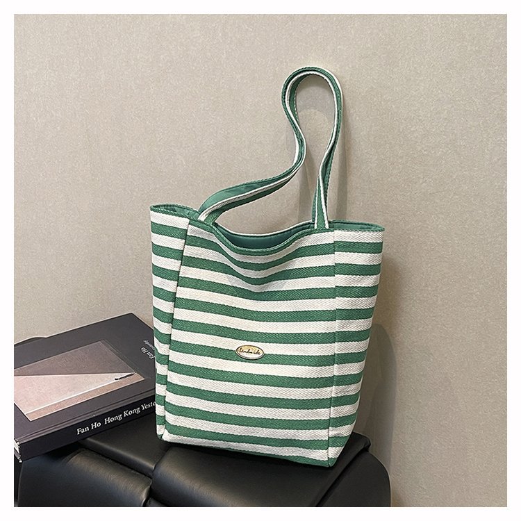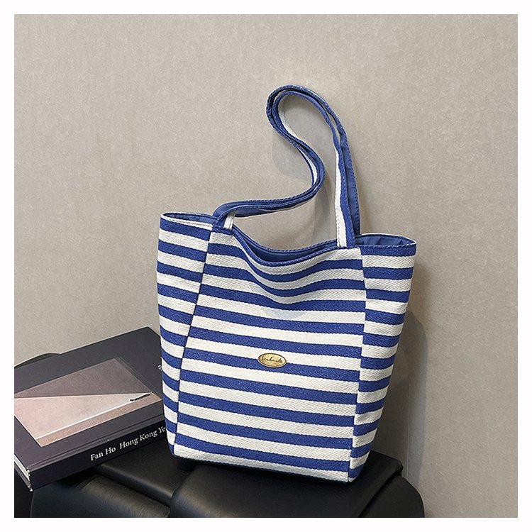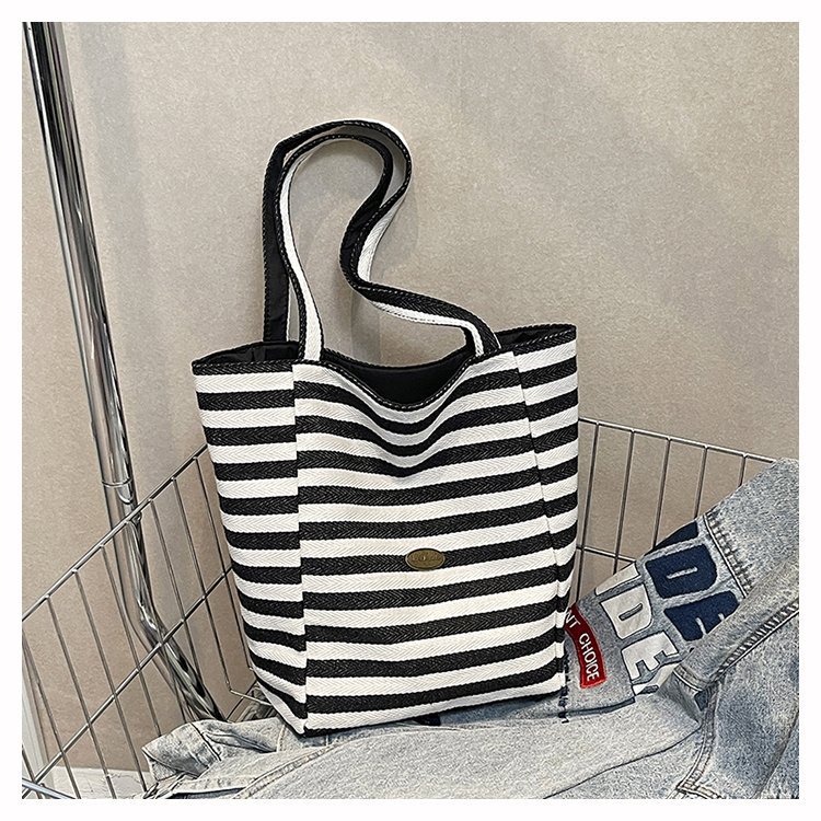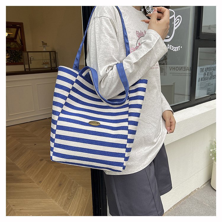 条纹帆布双面可用包新款慵懒风跨境休闲单肩包大容量托特包