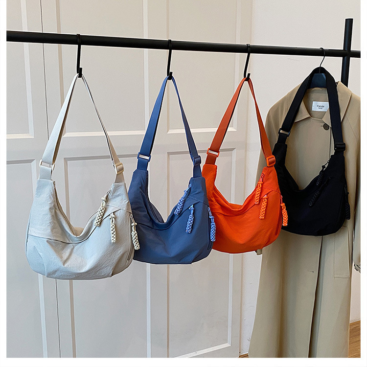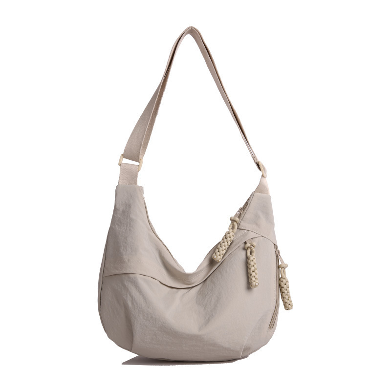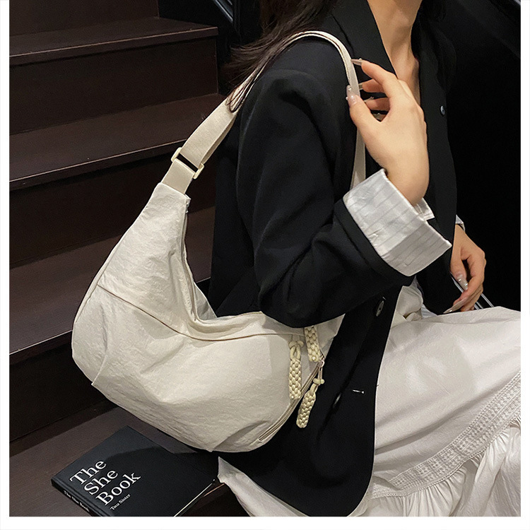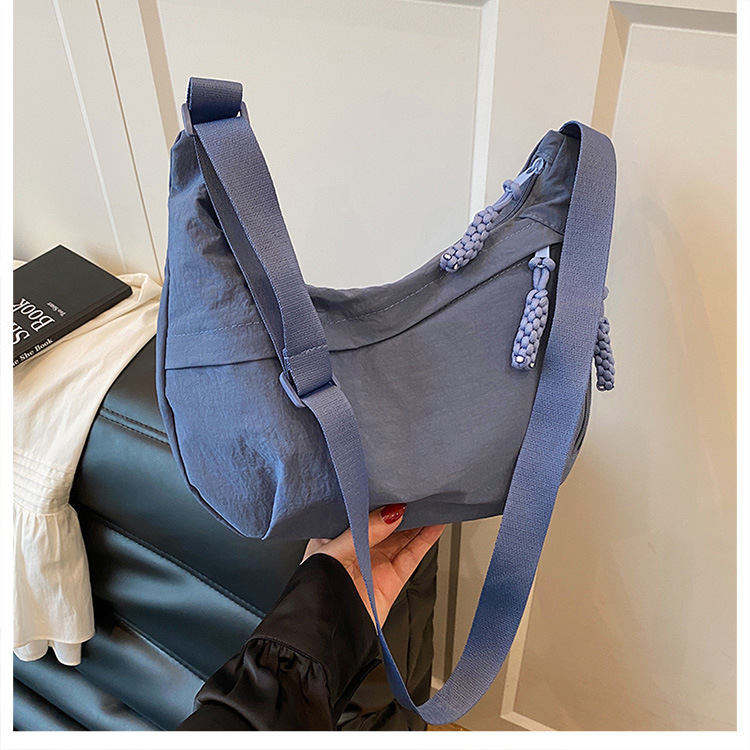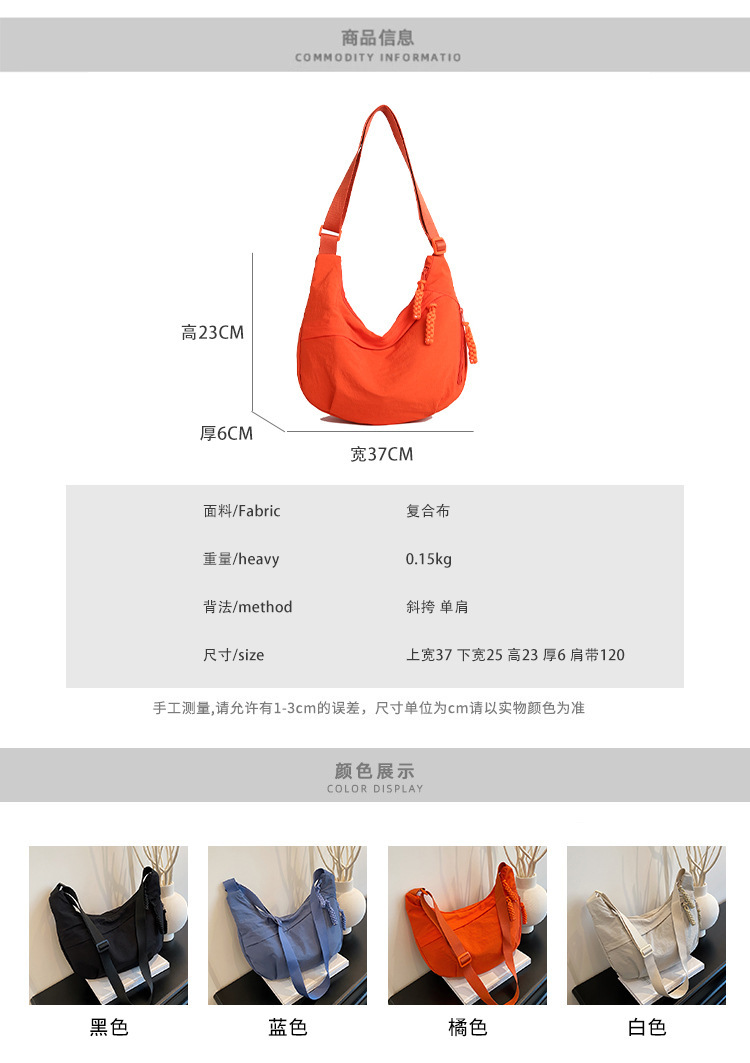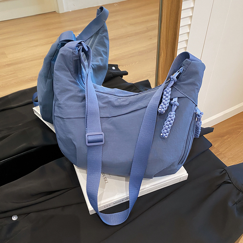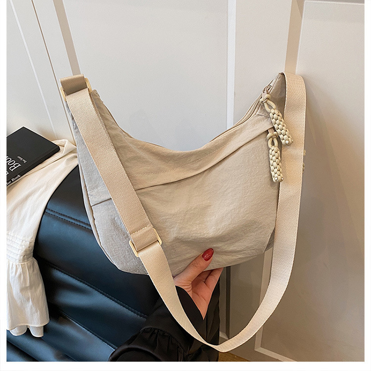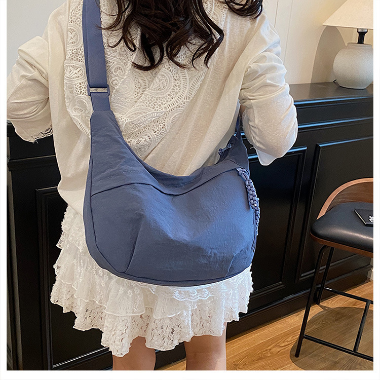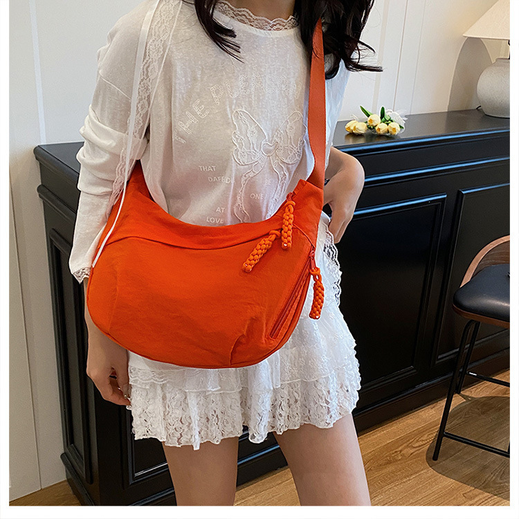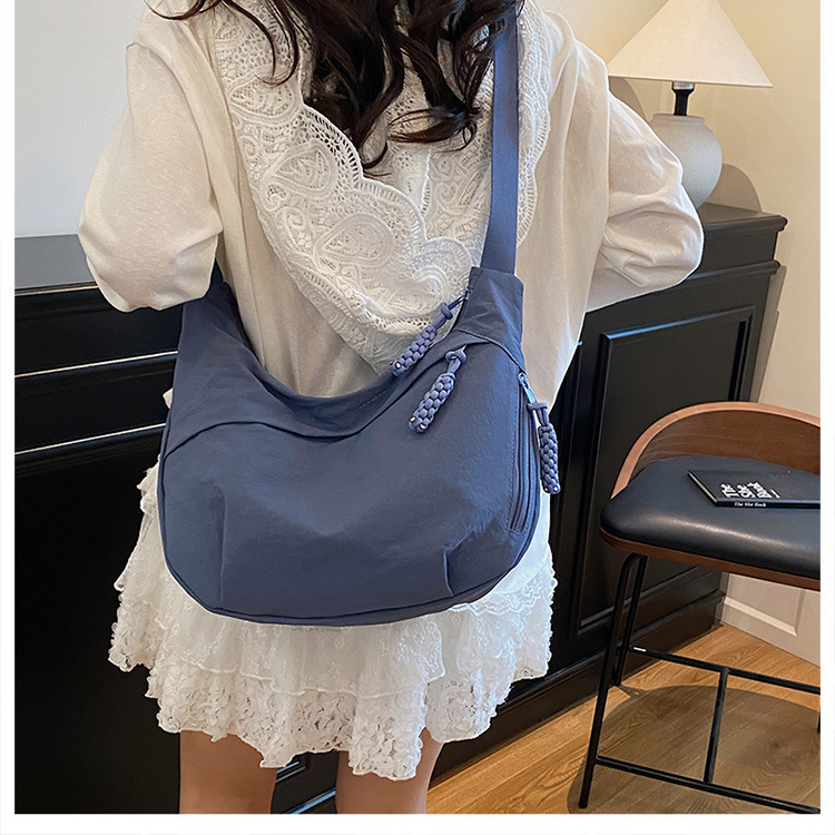 纯色时尚通勤单肩包女日常简约饺子包轻便女休闲尼龙布斜挎包 English | 投诉