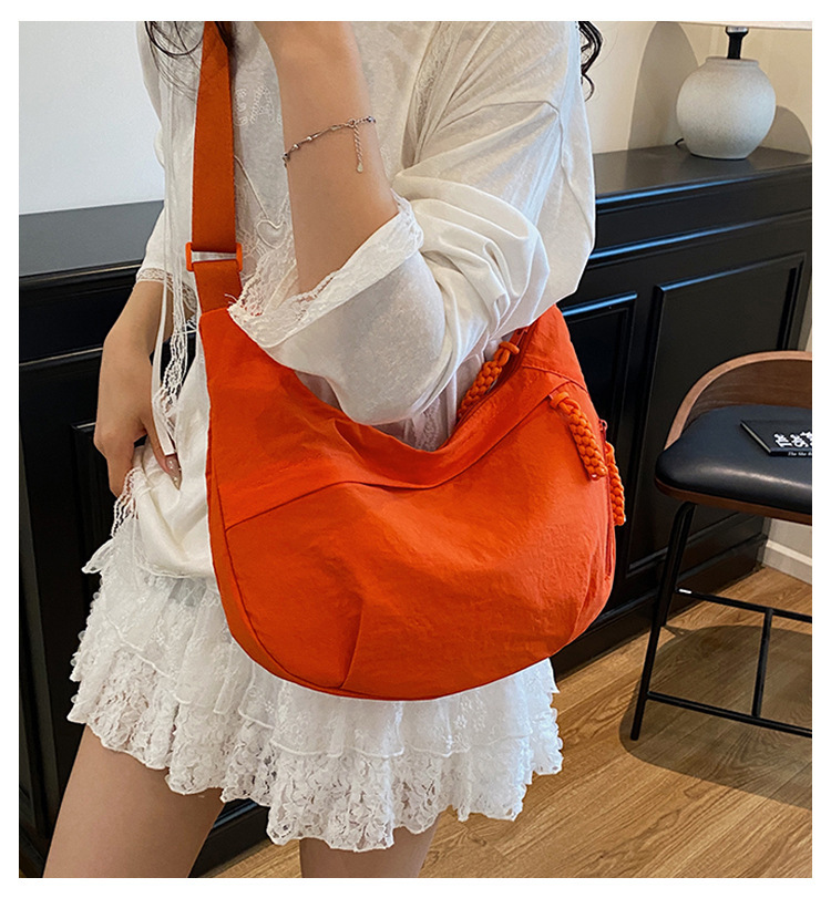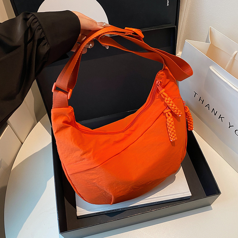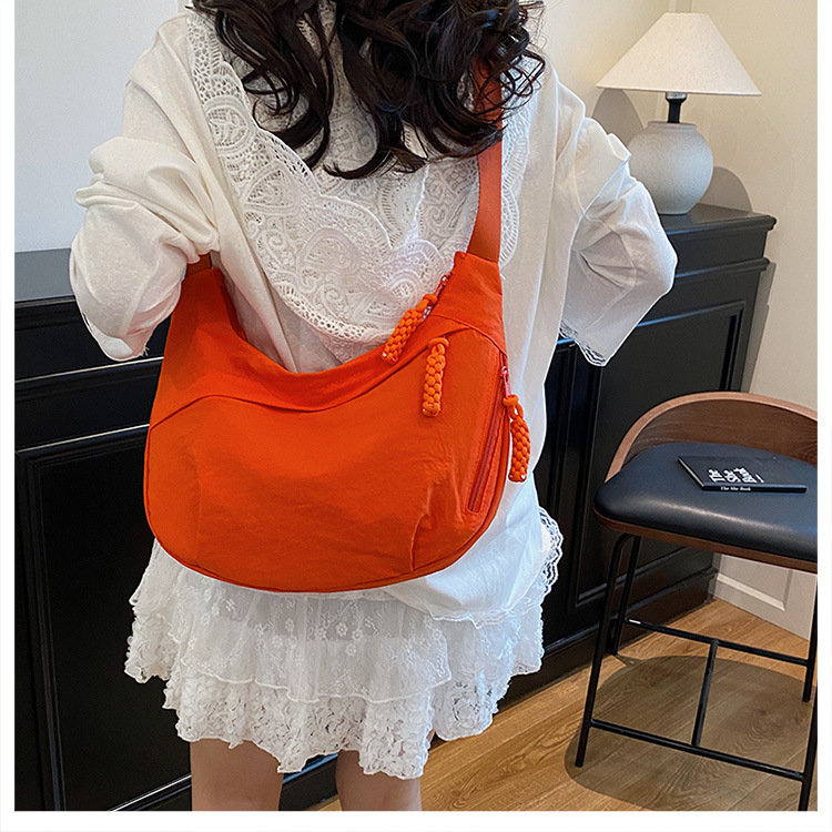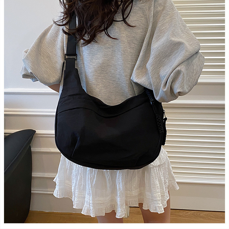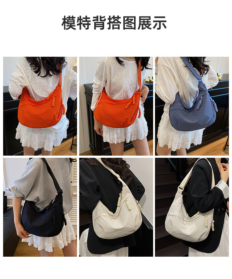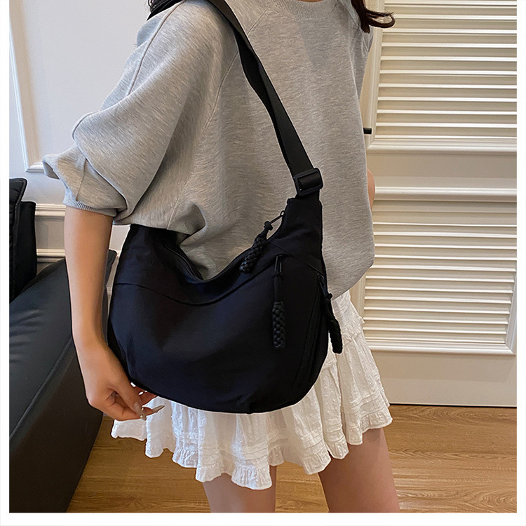 纯色时尚通勤单肩包女日常简约饺子包轻便女休闲尼龙布斜挎包