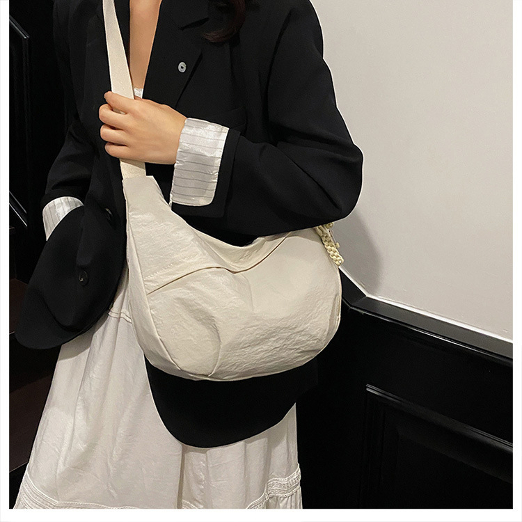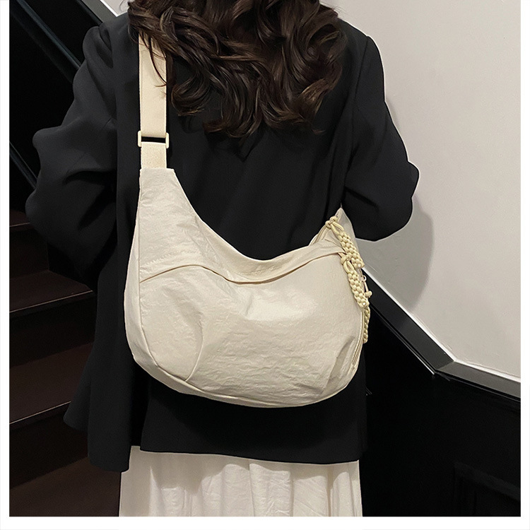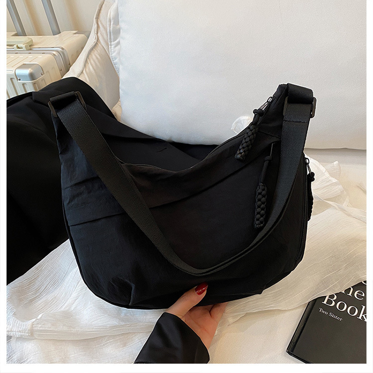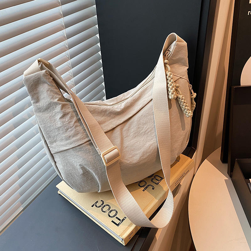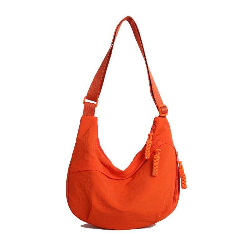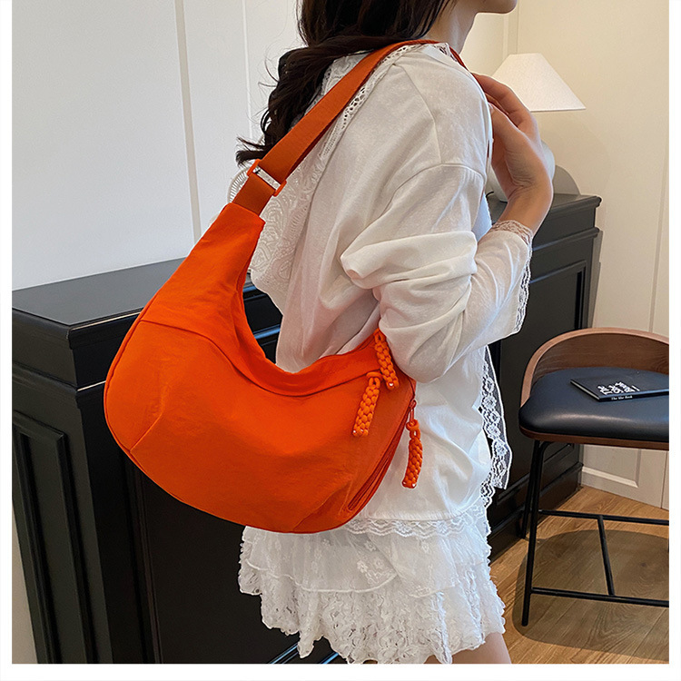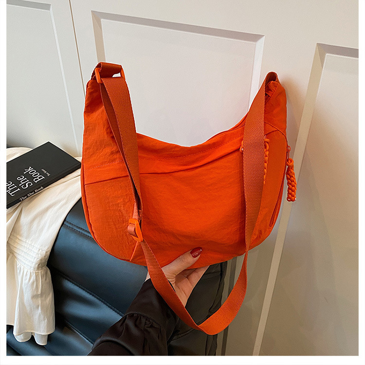 纯色时尚通勤单肩包女日常简约饺子包轻便女休闲尼龙布斜挎包