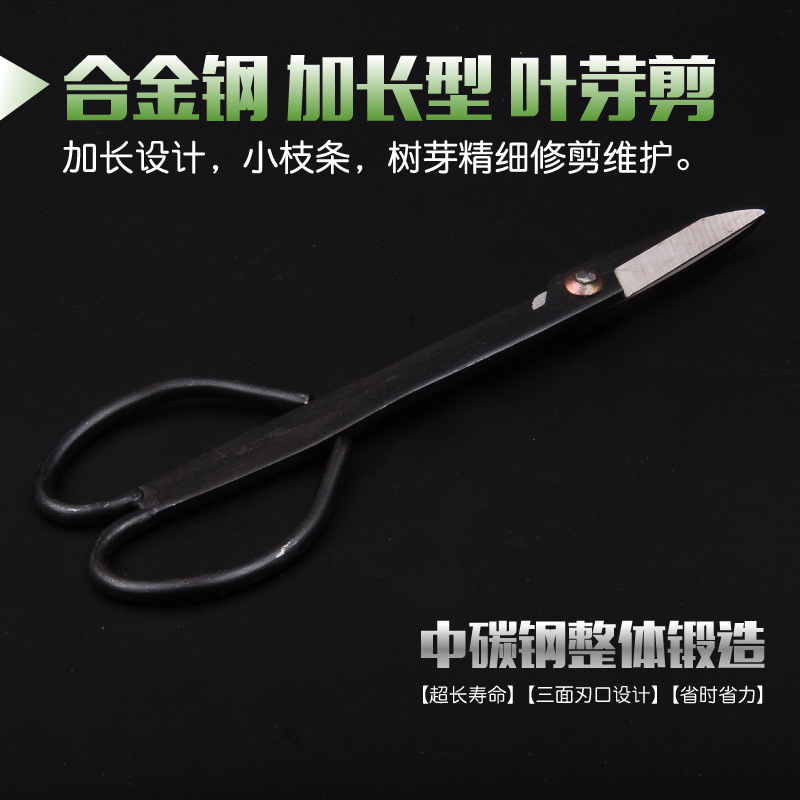 钢立人整枝剪叶芽剪刀盆栽园艺加长型剪刀盆景修剪工具煅造树芽剪