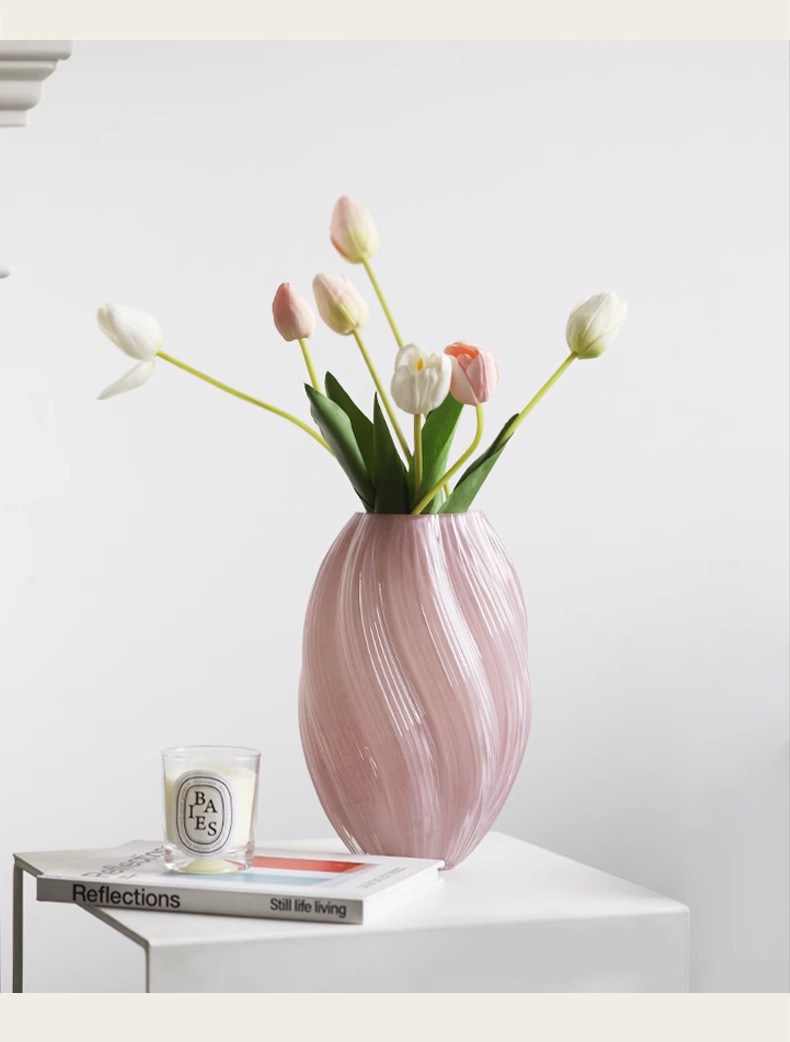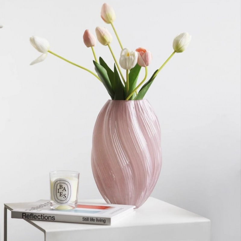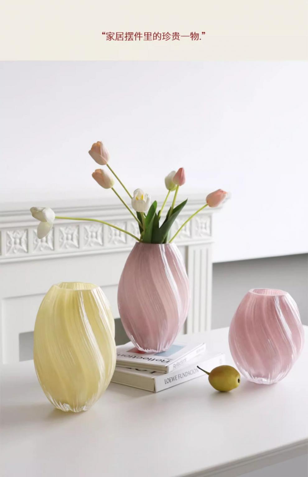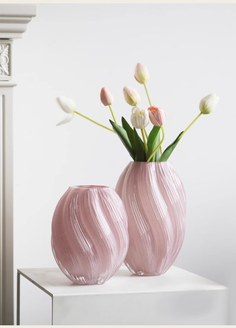 北欧式花瓶粉色玻璃花瓶高级感客厅家居装饰水培插花餐桌摆件桌面 English | 投诉