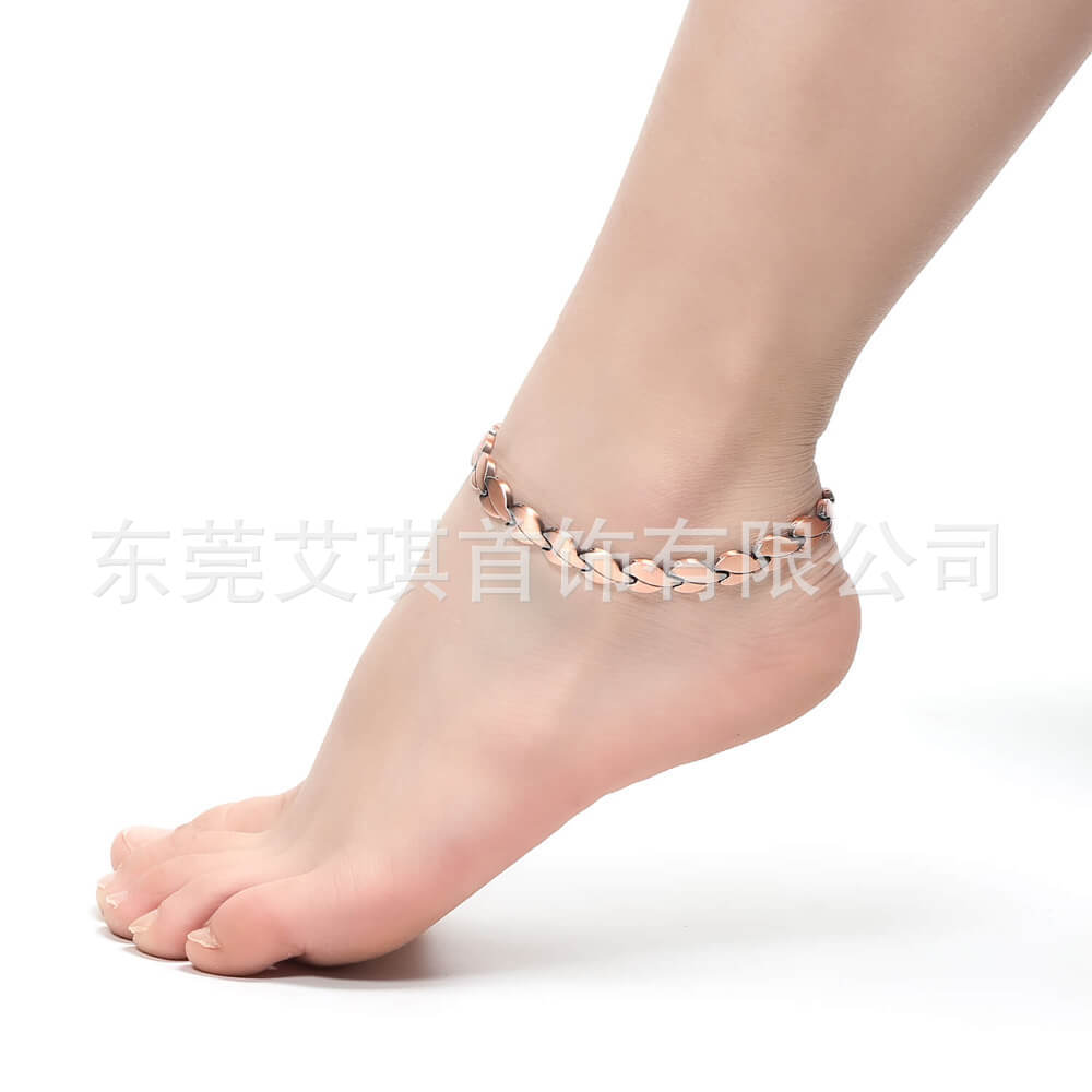 现货批发纯红铜脚链夏季爆款磁性红铜脚链女款磁石红铜脚链饰品