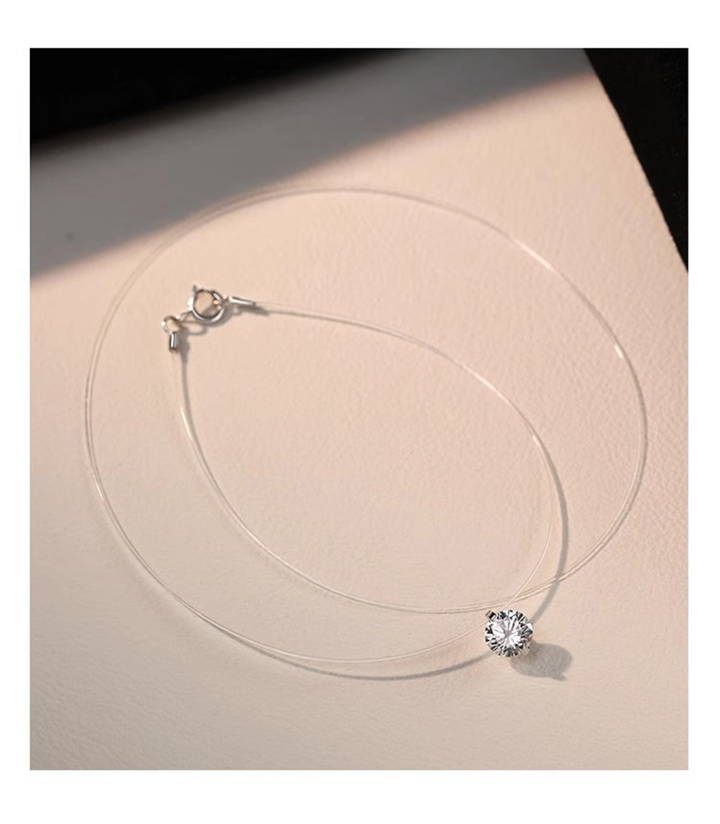 人鱼之泪项链饰品女爆款隐形鱼线精致简约轻奢爆闪锆石设计锁骨链