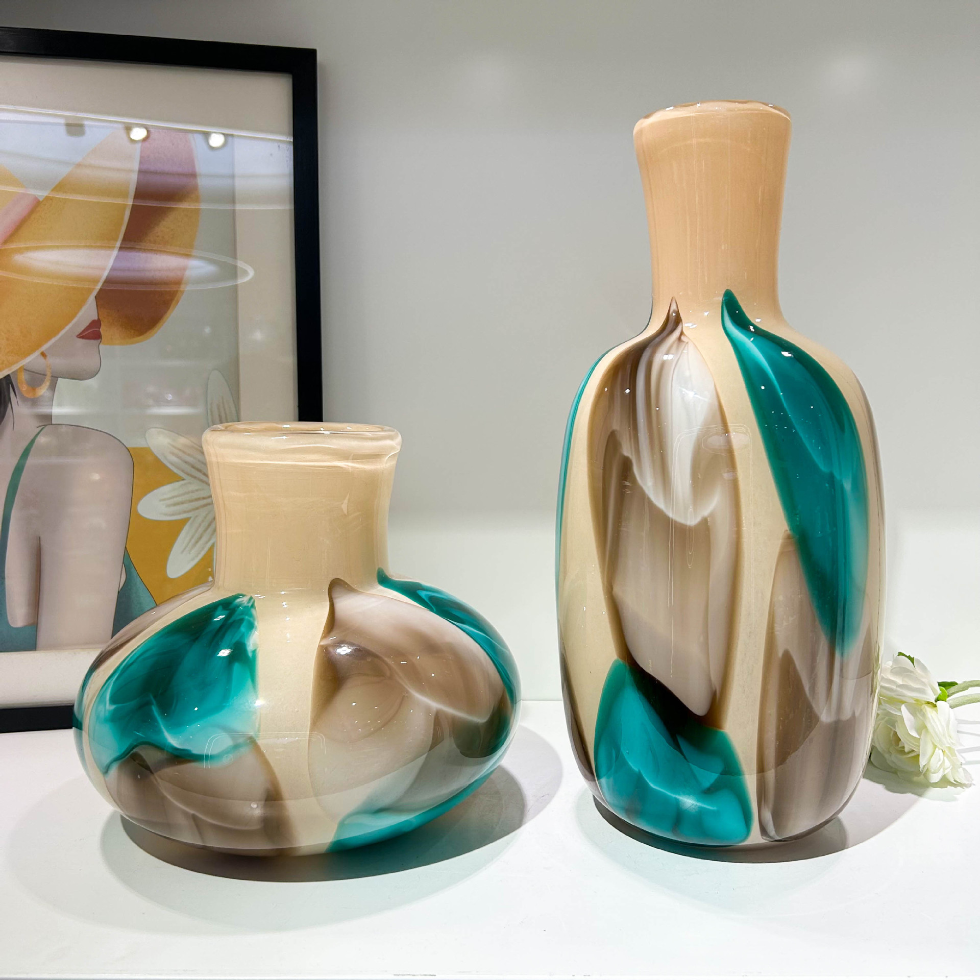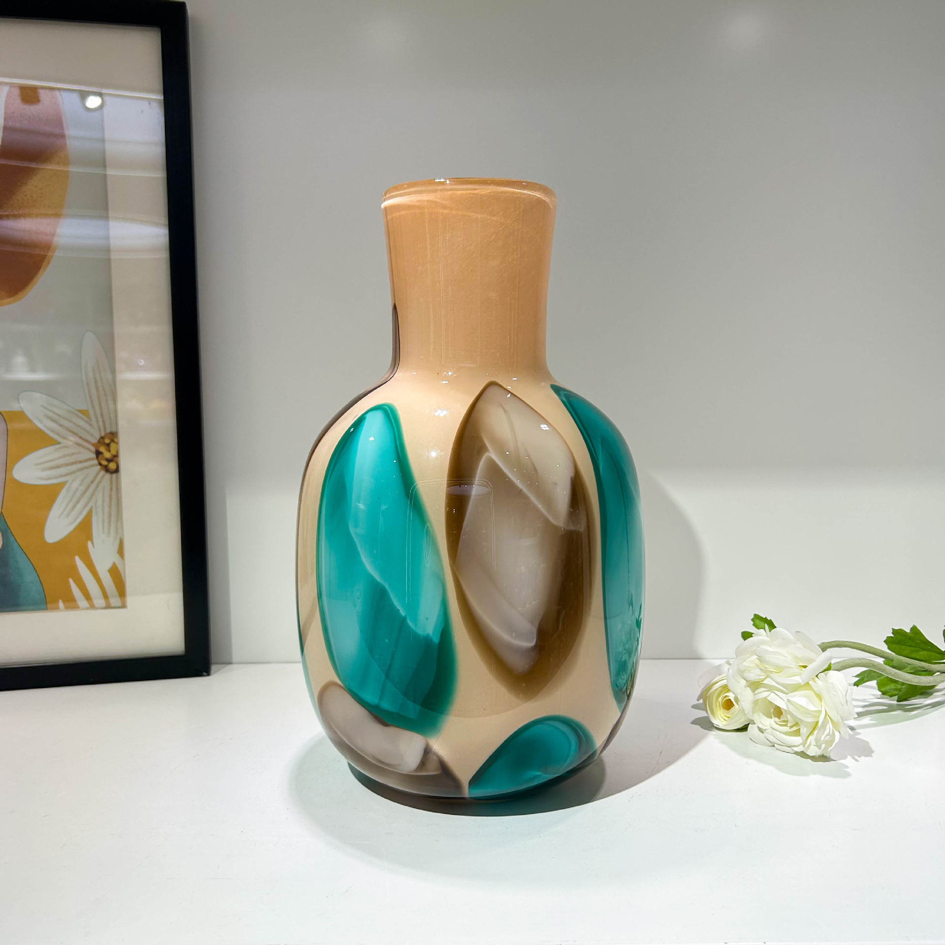 中古风原色料手工琉璃花瓶家居软装博古架样板间高级感摆件装饰品 English | 投诉