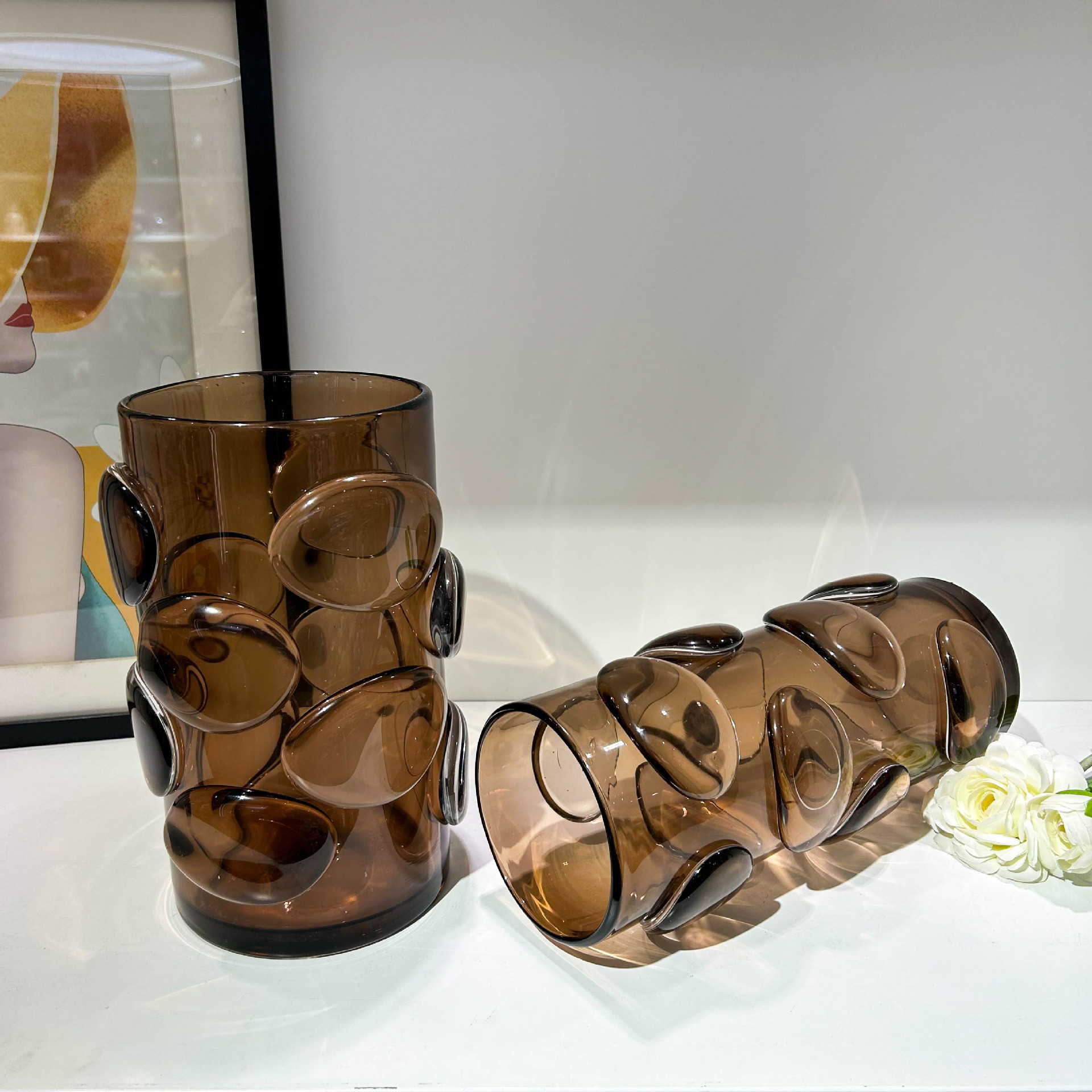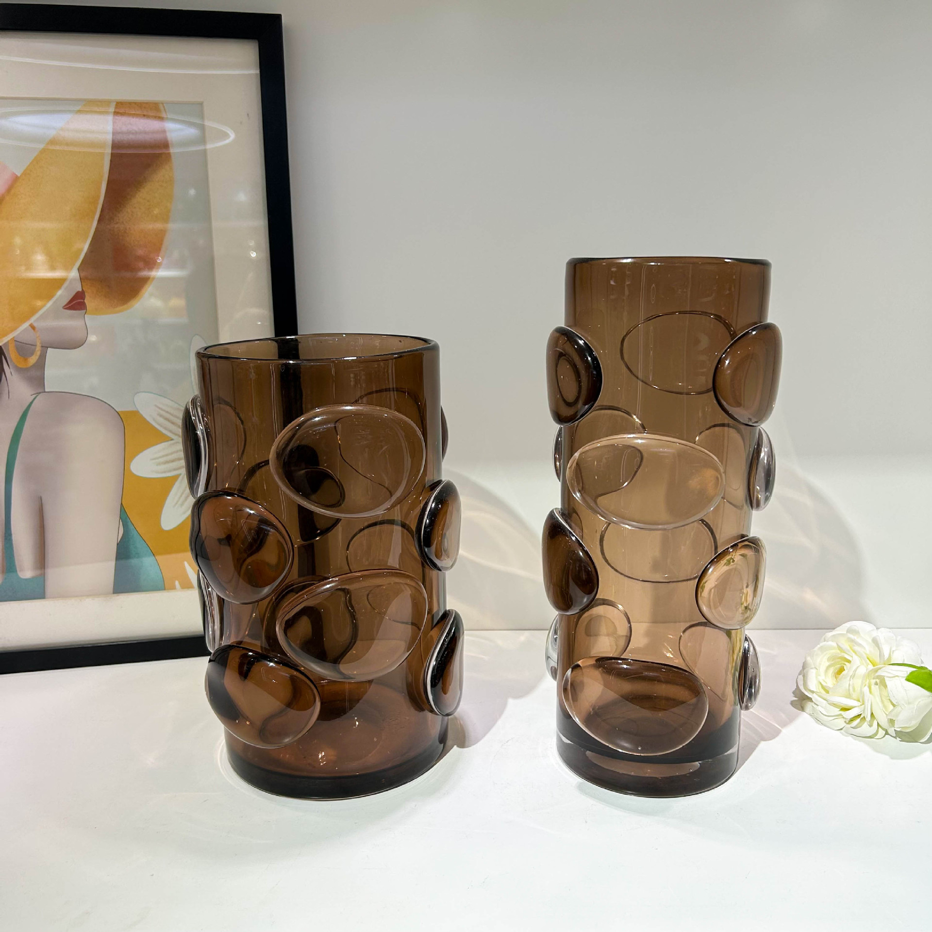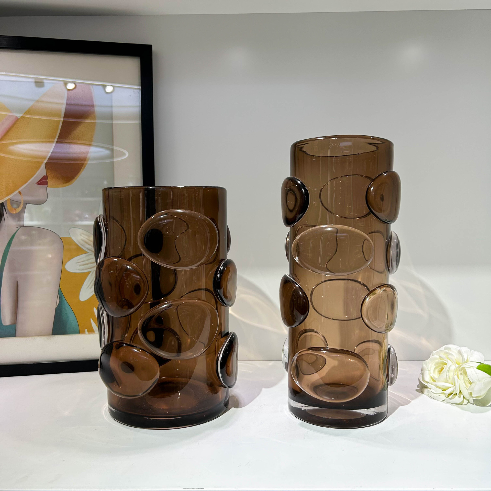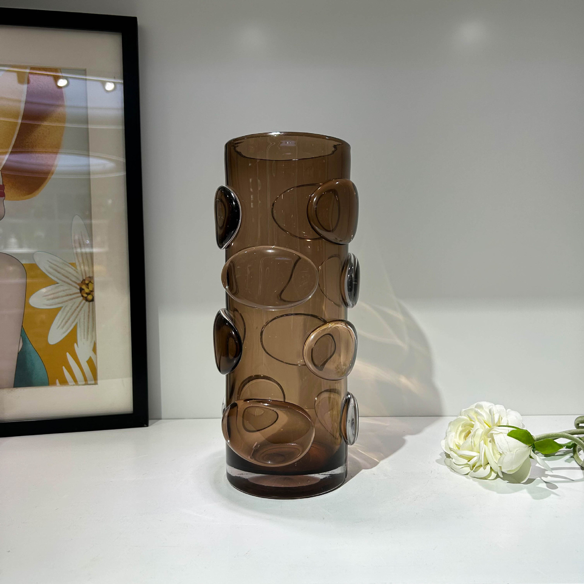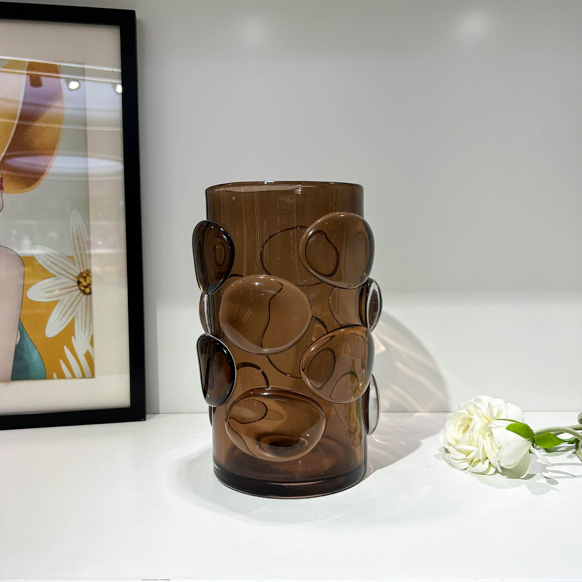 北欧简约咖色贴片直筒花瓶家居样板间办公室民宿酒店高端装饰摆件 English | 投诉