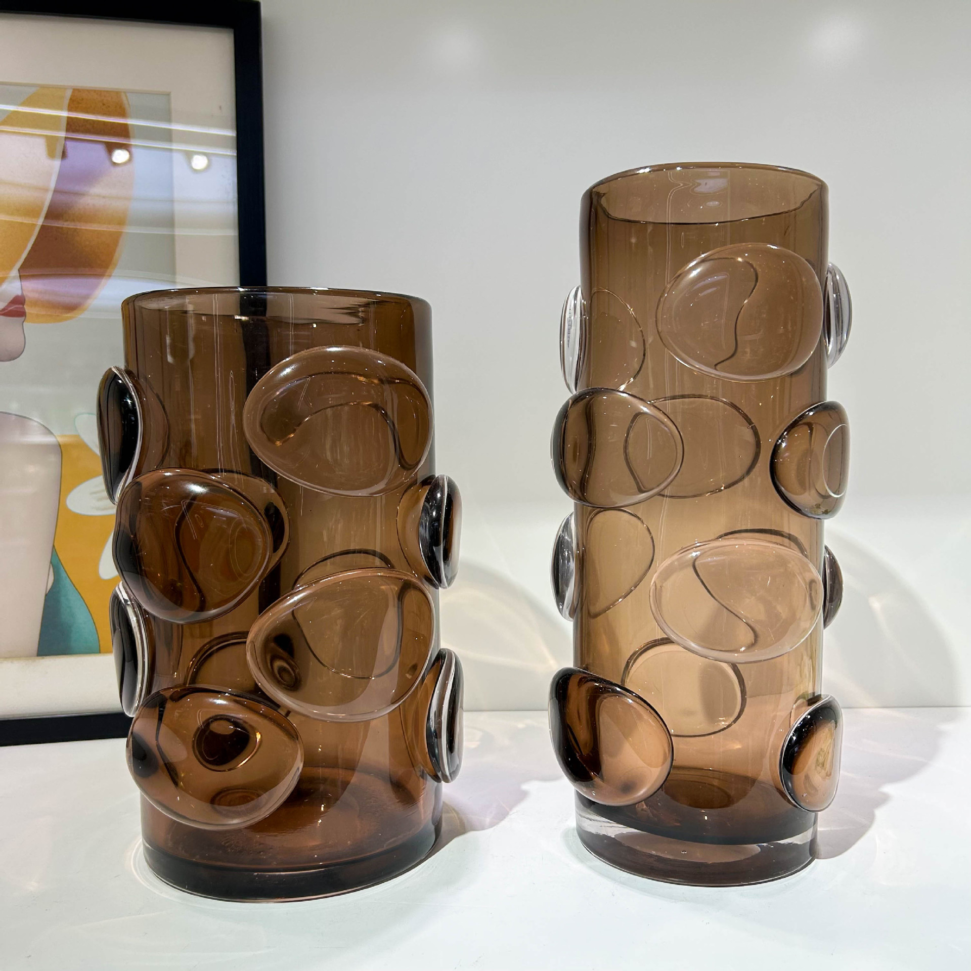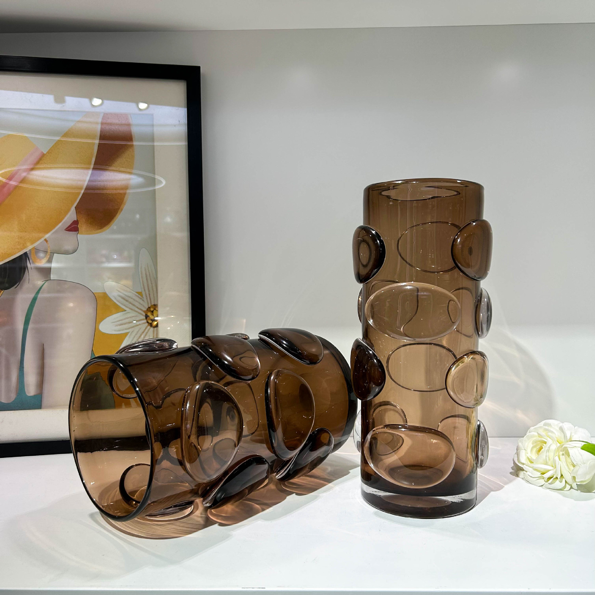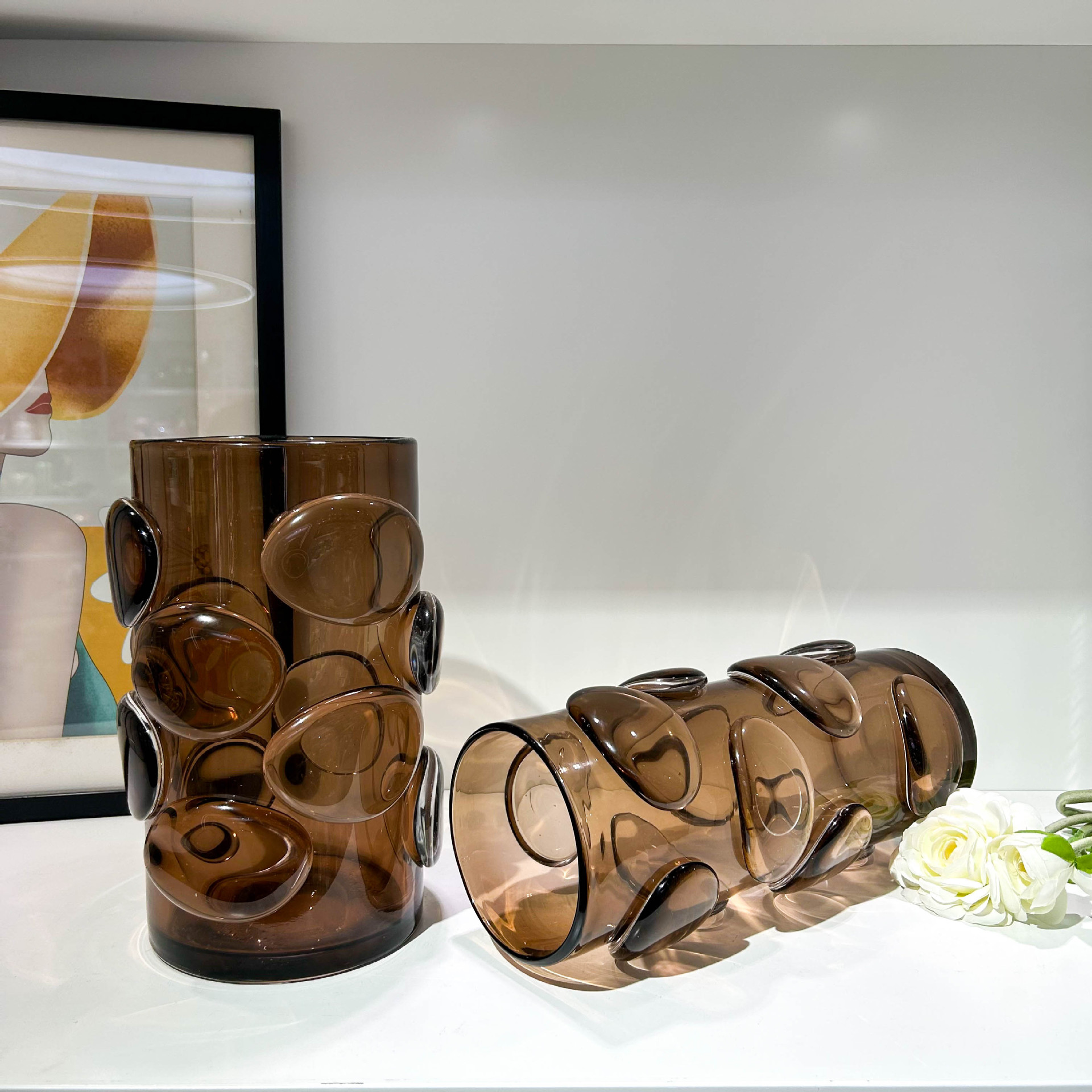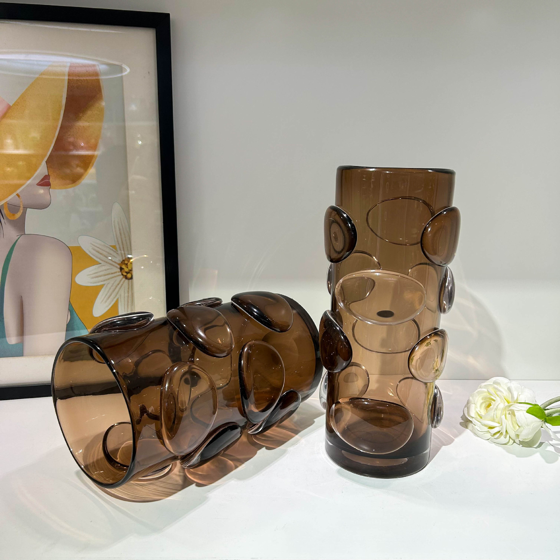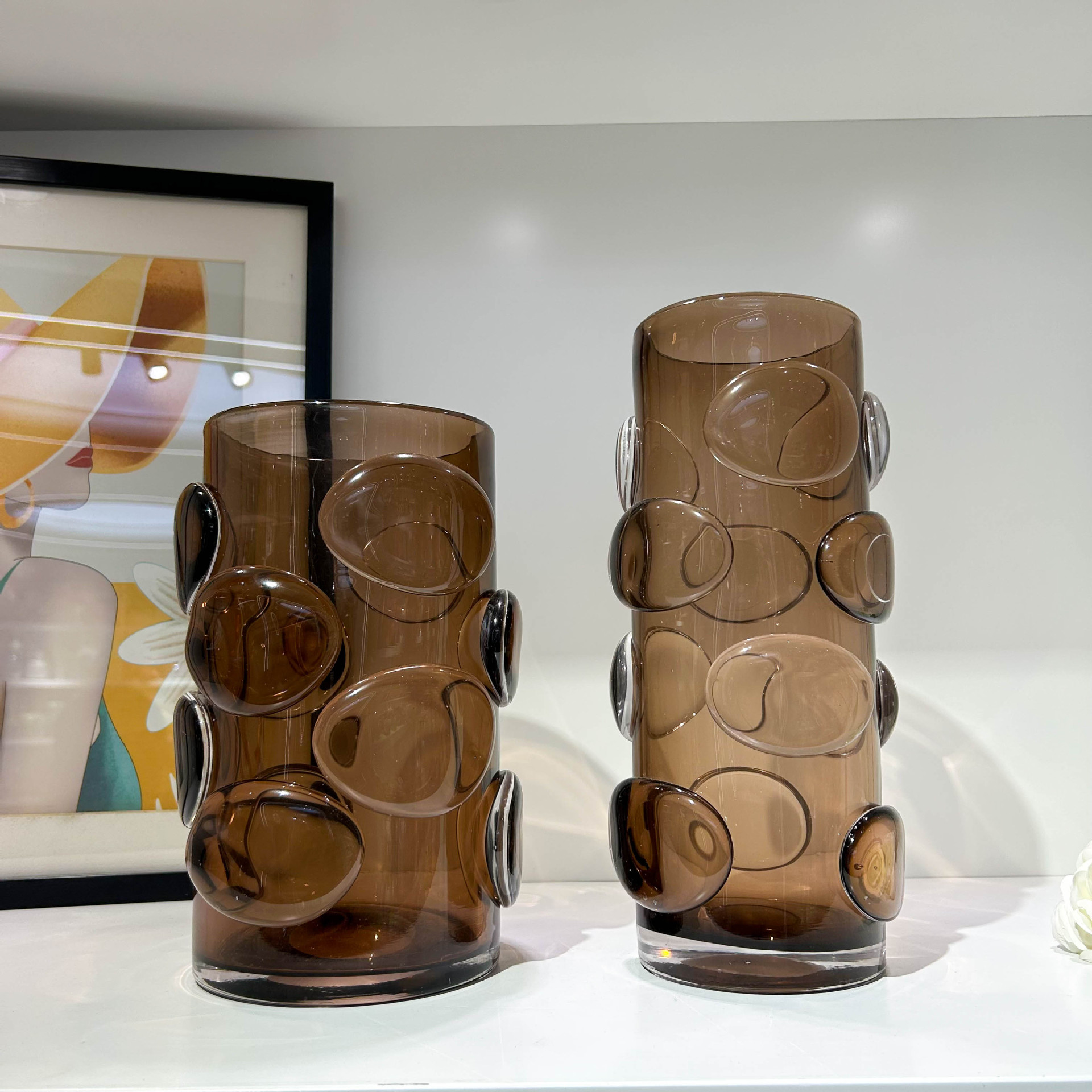 北欧简约咖色贴片直筒花瓶家居样板间办公室民宿酒店高端装饰摆件 English | 投诉