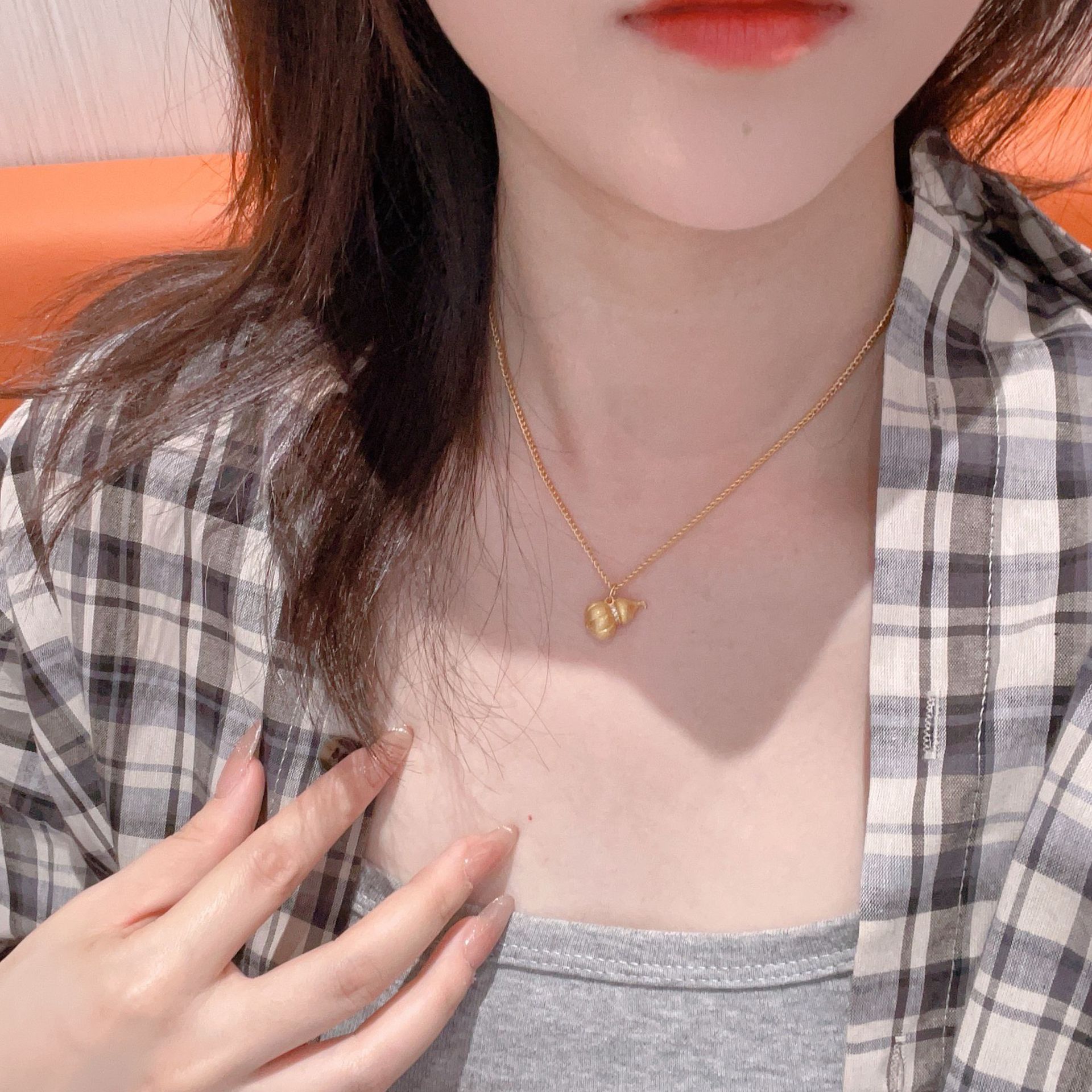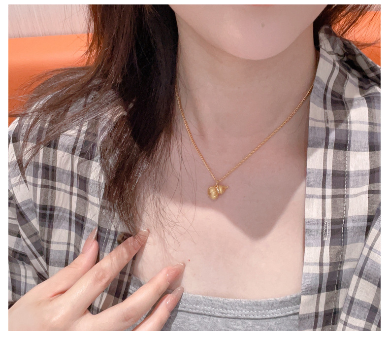 新中式古法金拉丝银沙金葫芦吊坠纳福项链女磨砂胖福禄锁骨链百搭