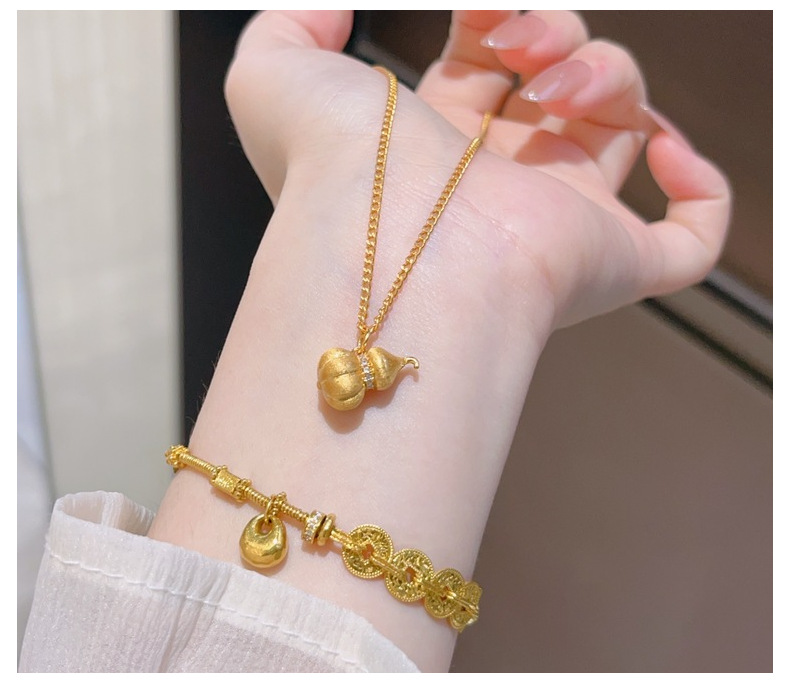 新中式古法金拉丝银沙金葫芦吊坠纳福项链女磨砂胖福禄锁骨链百搭 投诉