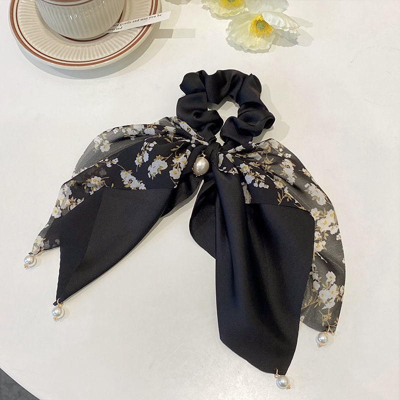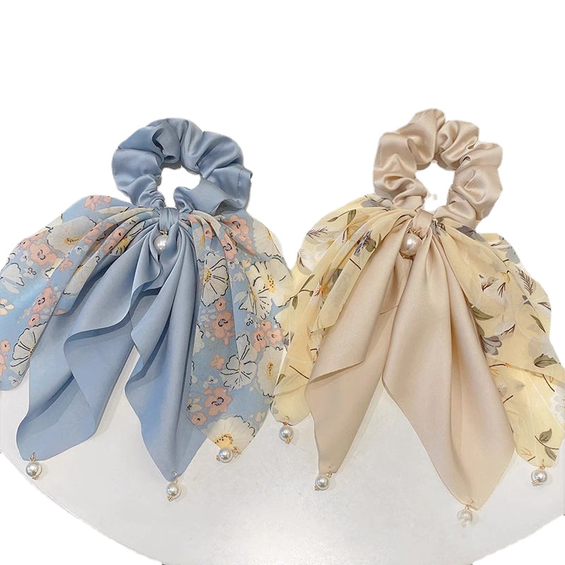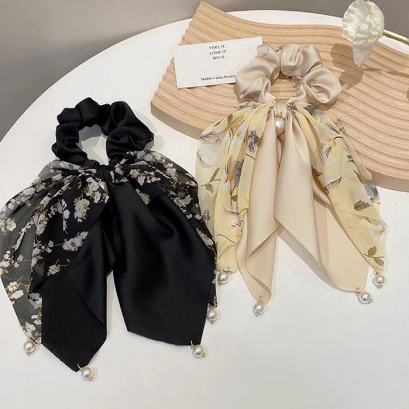夏季清新蝴蝶结飘带发圈珍珠吊坠扎马尾发饰2025新款法式丝巾头绳 投诉