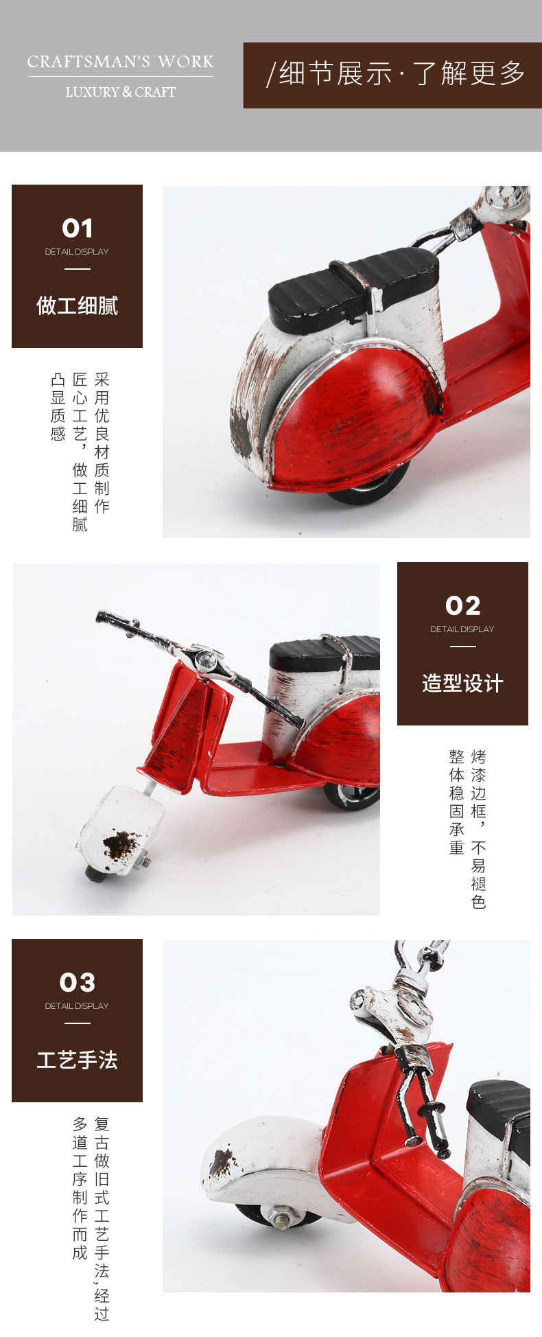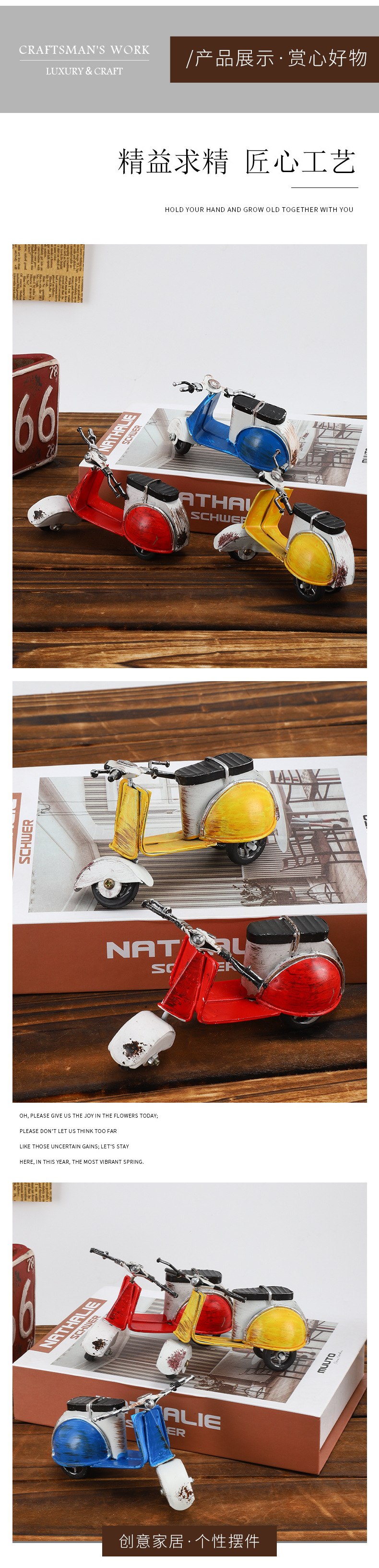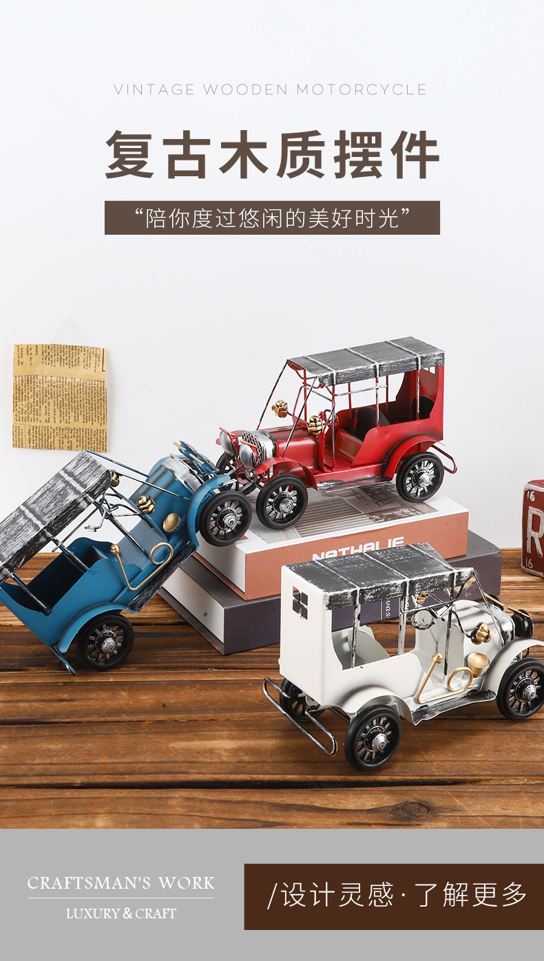 复古摩托车摆铁艺老爷车模型桌面装饰品铁皮小摆件摄影道具摆设品 投诉