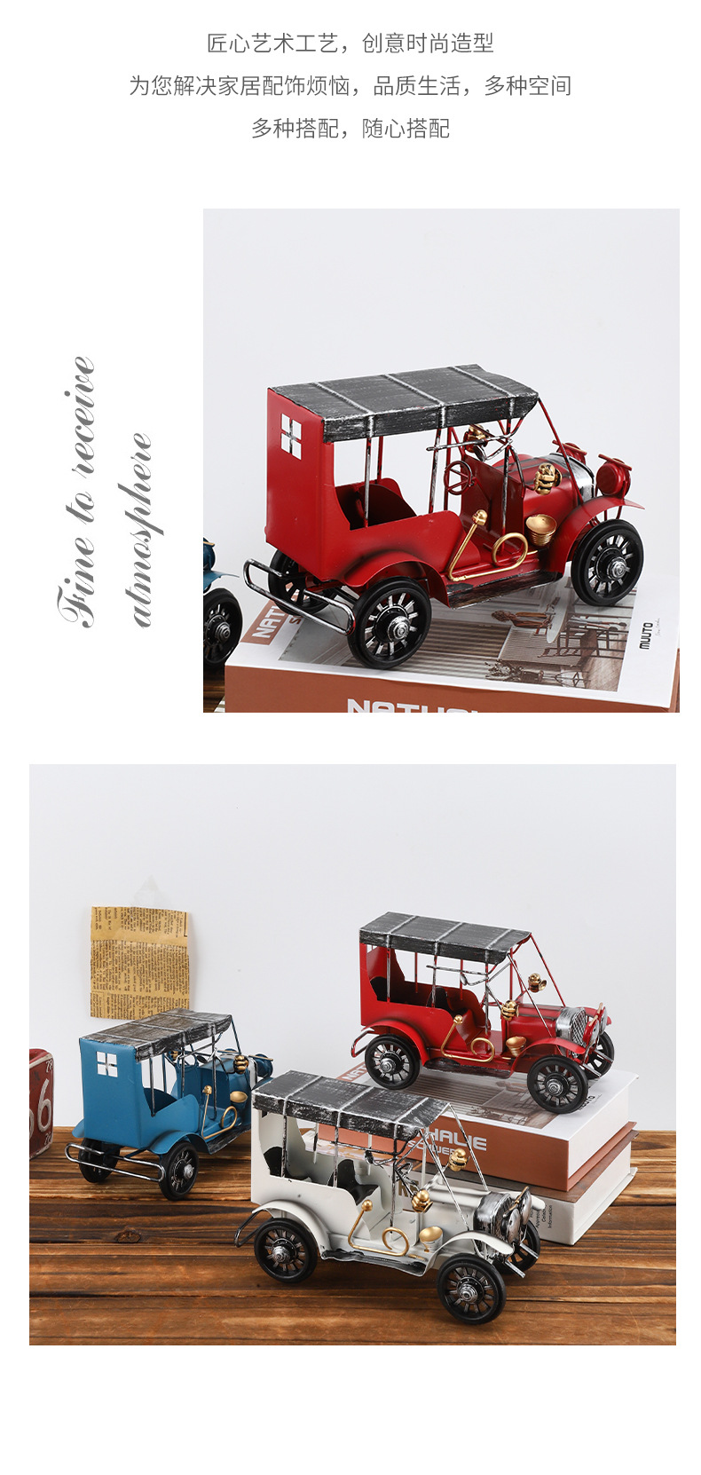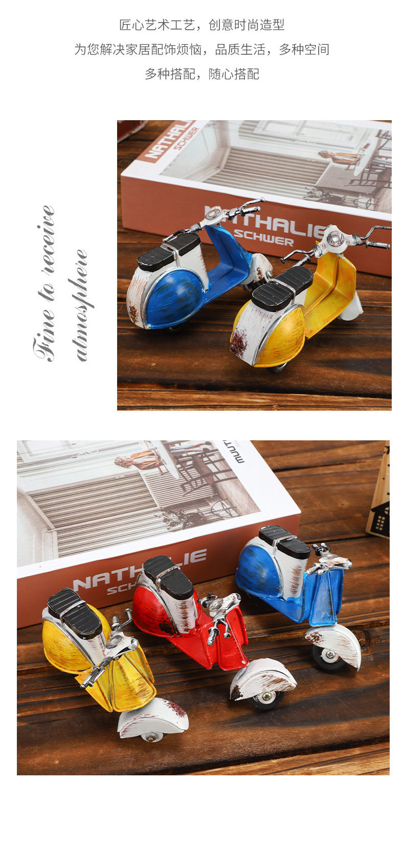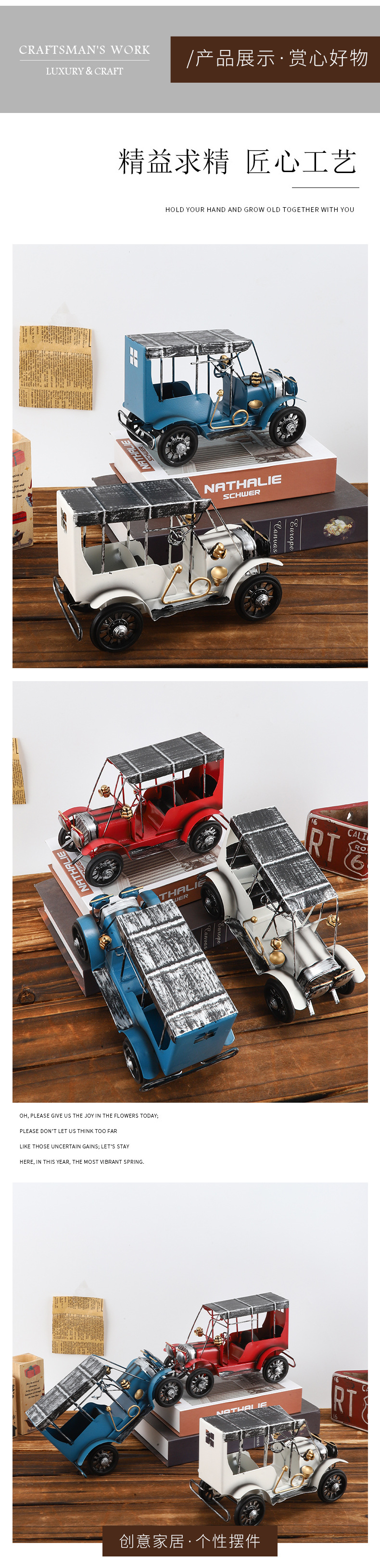 复古摩托车摆铁艺老爷车模型桌面装饰品铁皮小摆件摄影道具摆设品 投诉