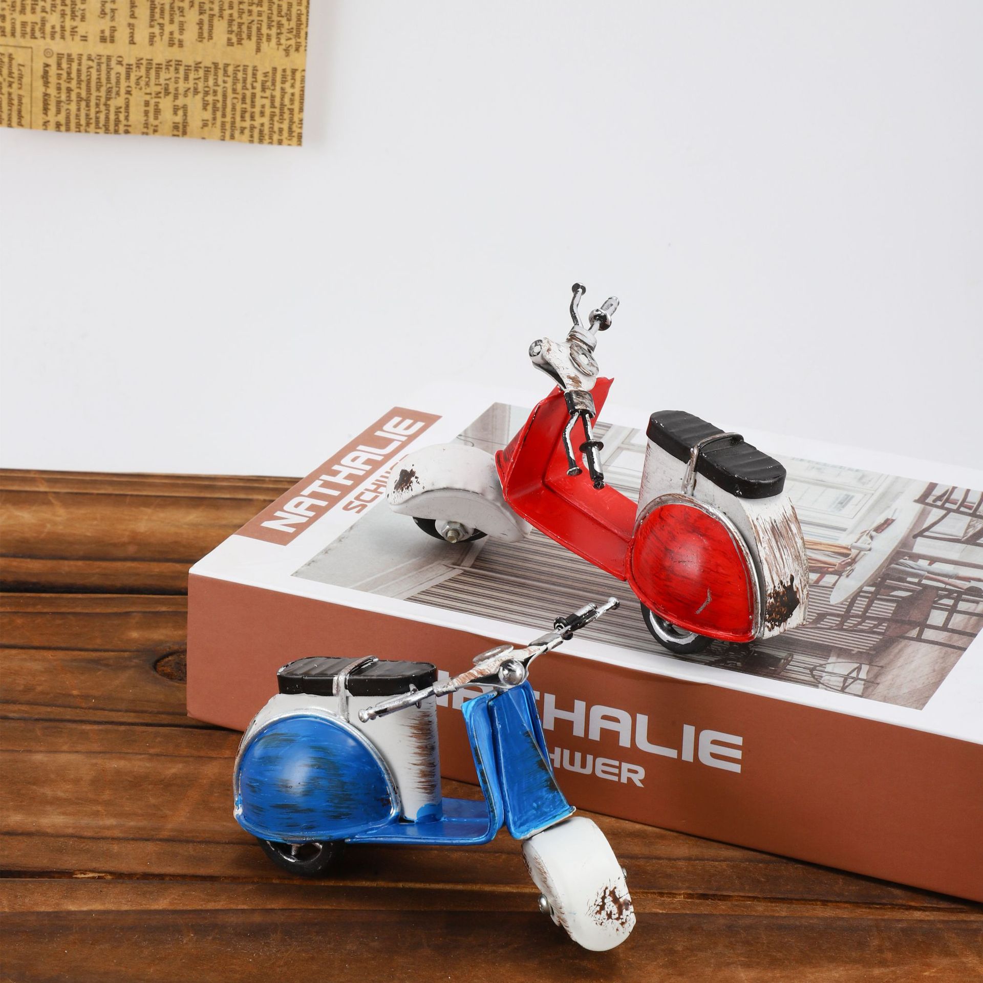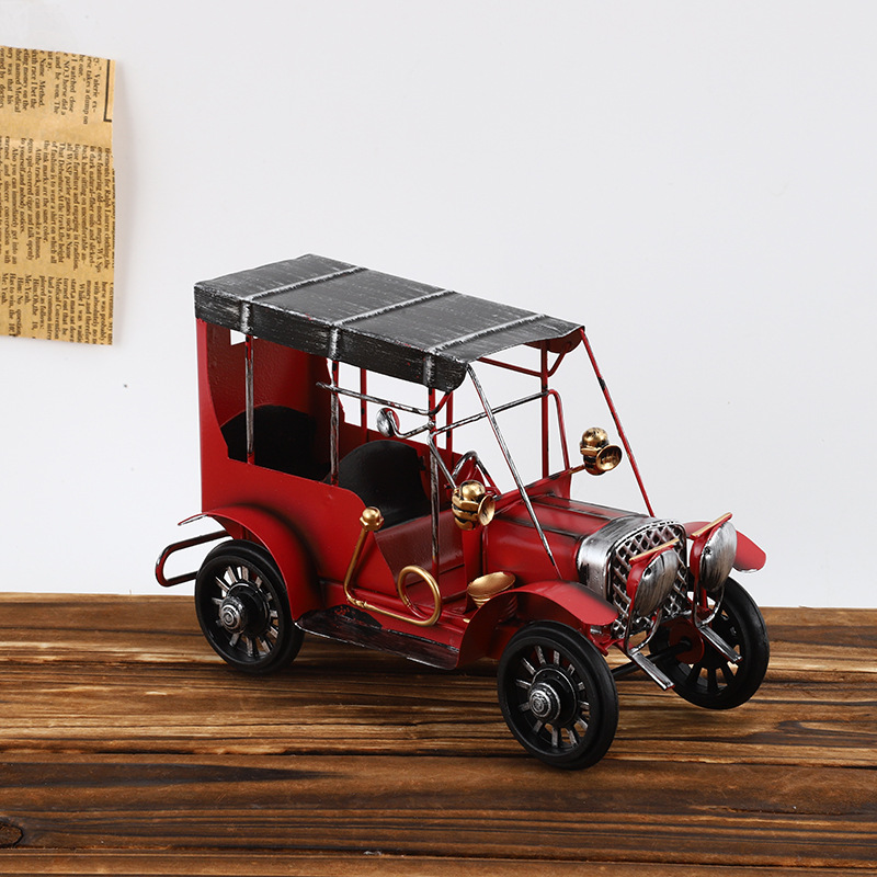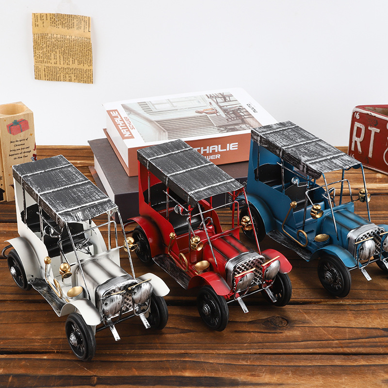 复古摩托车摆铁艺老爷车模型桌面装饰品铁皮小摆件摄影道具摆设品
