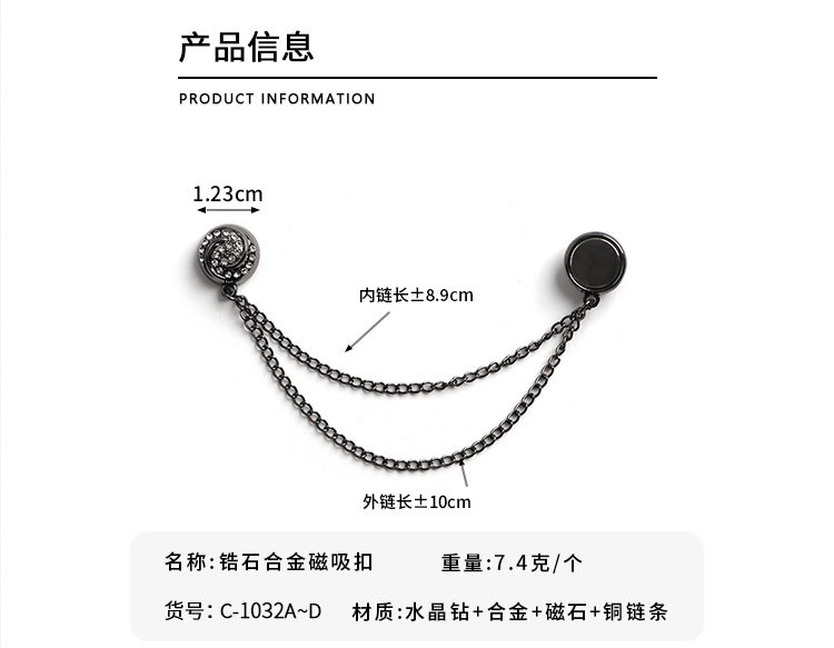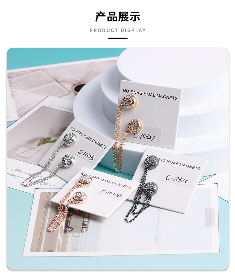 跨境热销头巾磁吸链条扣衣角打结扣强磁胸针丝巾防走光磁铁扣批发 English | 投诉