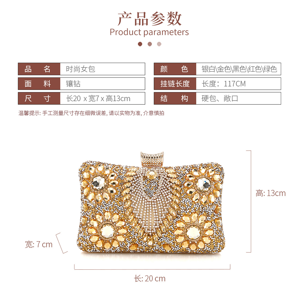 跨境新款女士晚宴包欧美服装百搭晚装包镶装手提单肩斜挂手拿女包 投诉