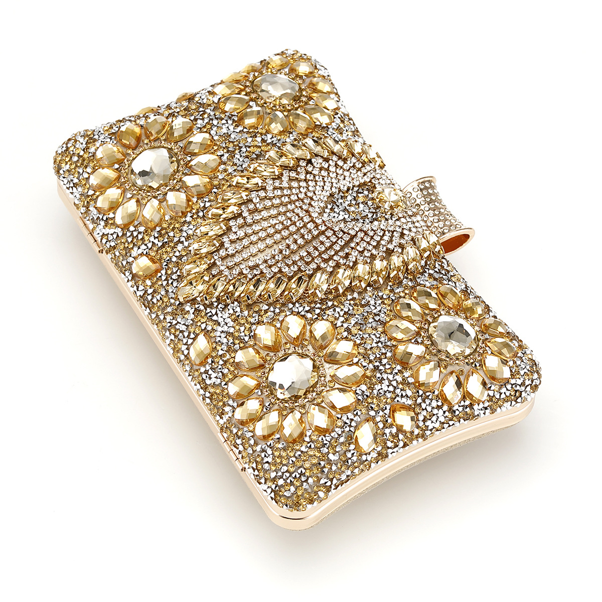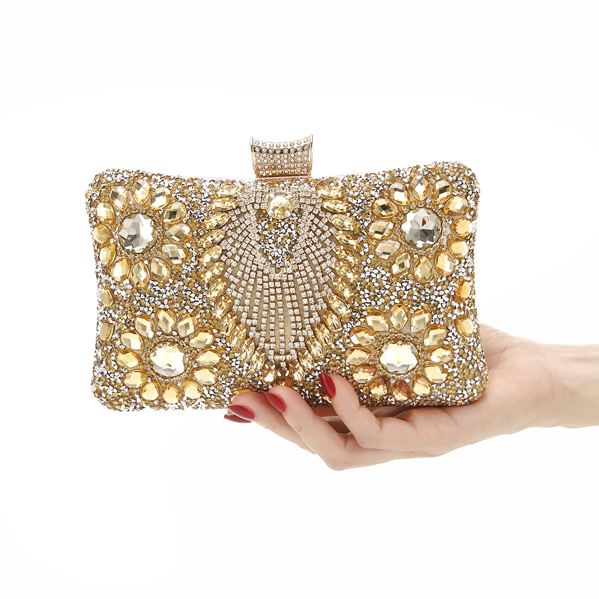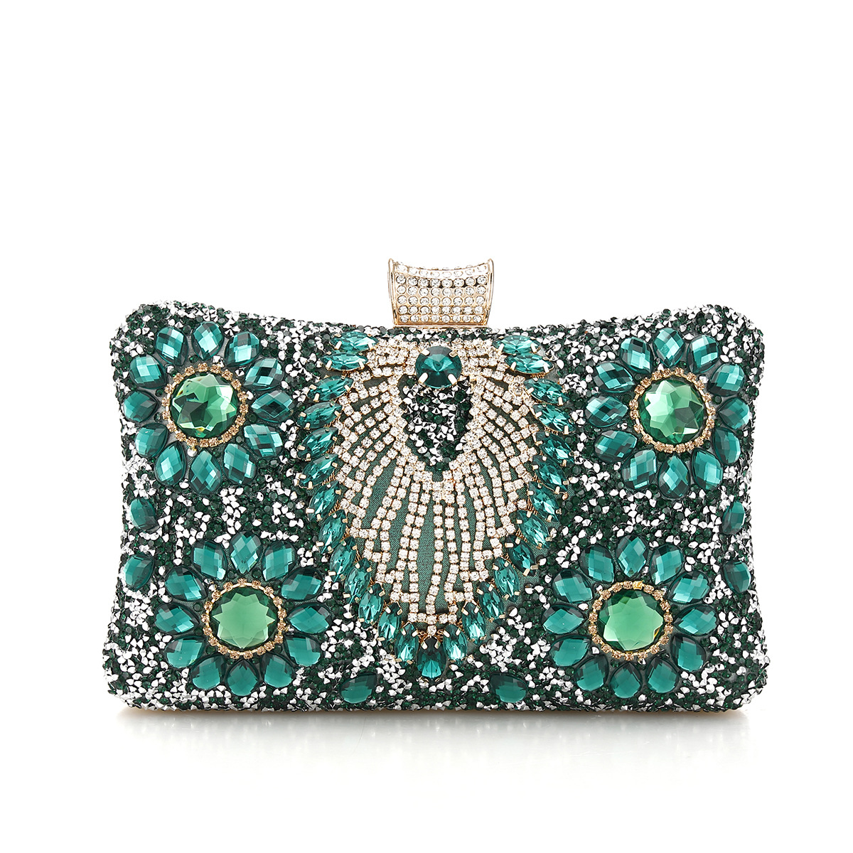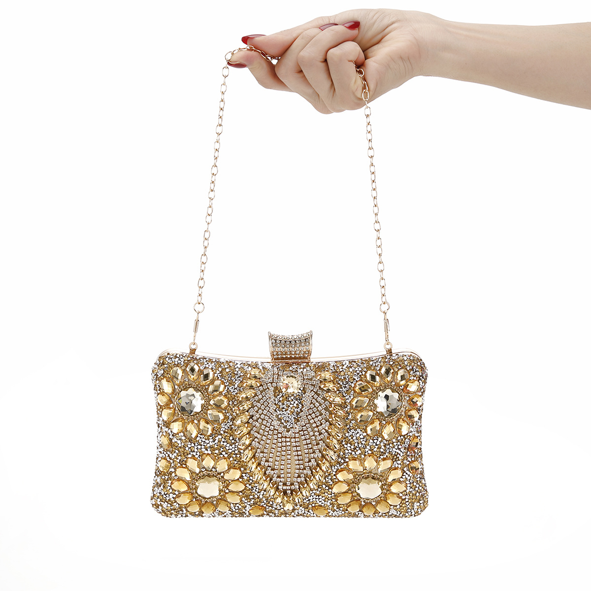 跨境新款女士晚宴包欧美服装百搭晚装包镶装手提单肩斜挂手拿女包