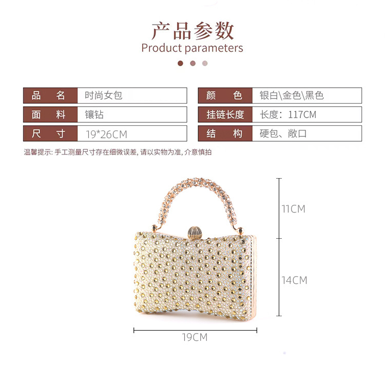 跨境新款晚宴包欧美单肩斜挂手拿包手提包女士百搭服装镶钻女包 投诉