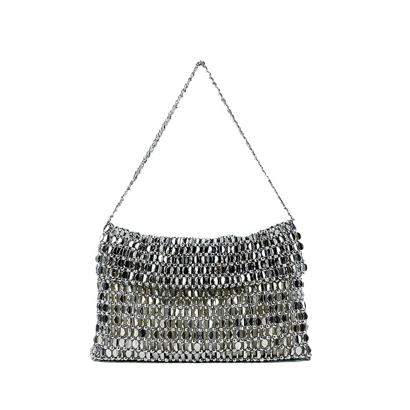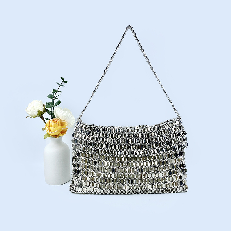 复古金属亮片银色包包女新款包手工编织高级感手提单肩腋下包