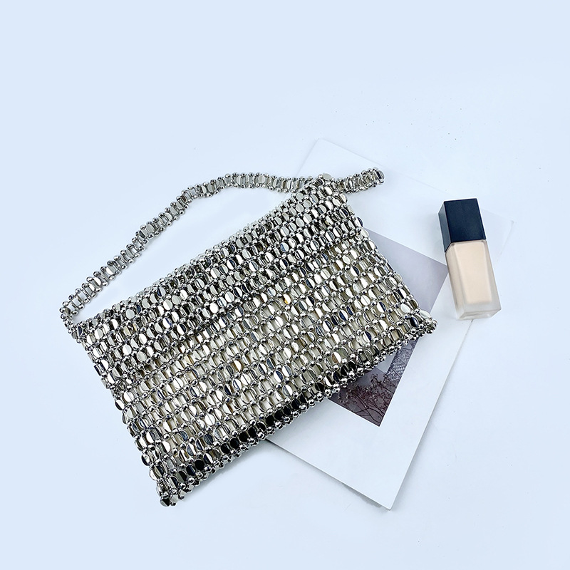 颜色: 银色 风格: 都市简约 货号: 2245 材质: 塑料 箱包潮流款式: 腋下包 箱包大小: 中 流行元素: 编织,串珠,其他 上市年份季节: 2024年春季 里料质地: 聚酯纤维 箱包形状: 横款方型