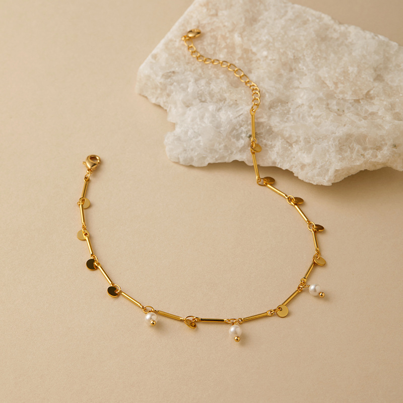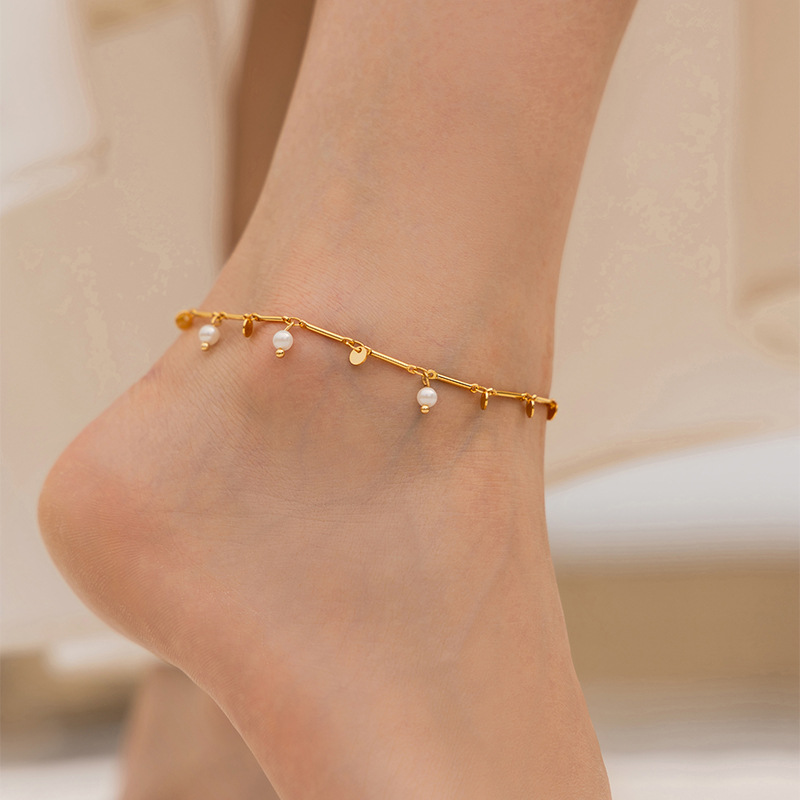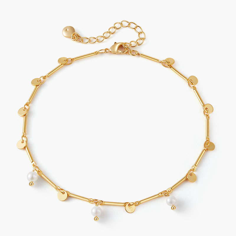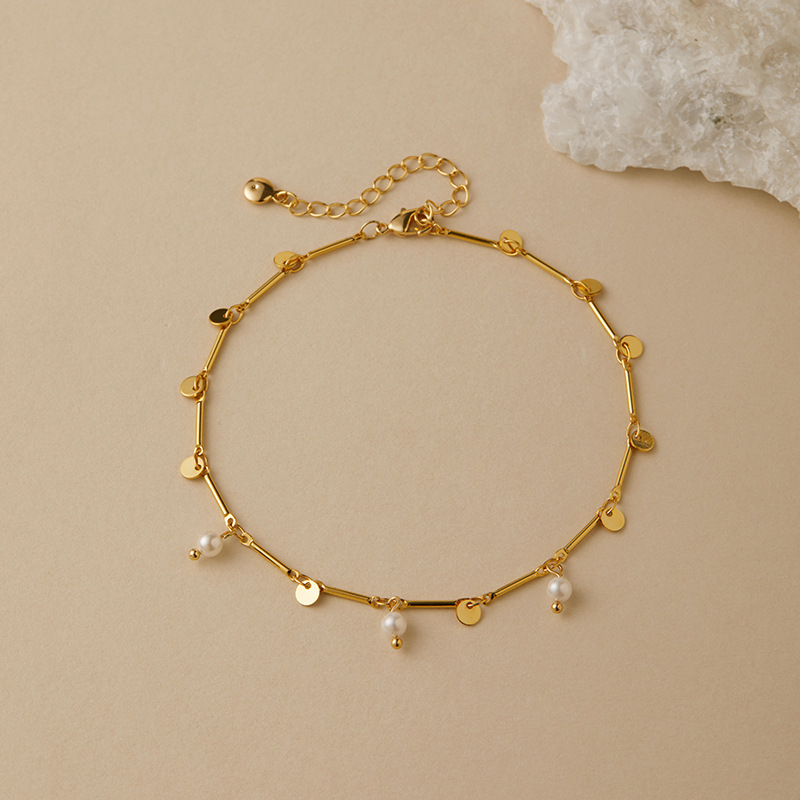 外贸热销优雅珍珠组合圆片吊坠设计足链 波西米亚风简约女式脚链