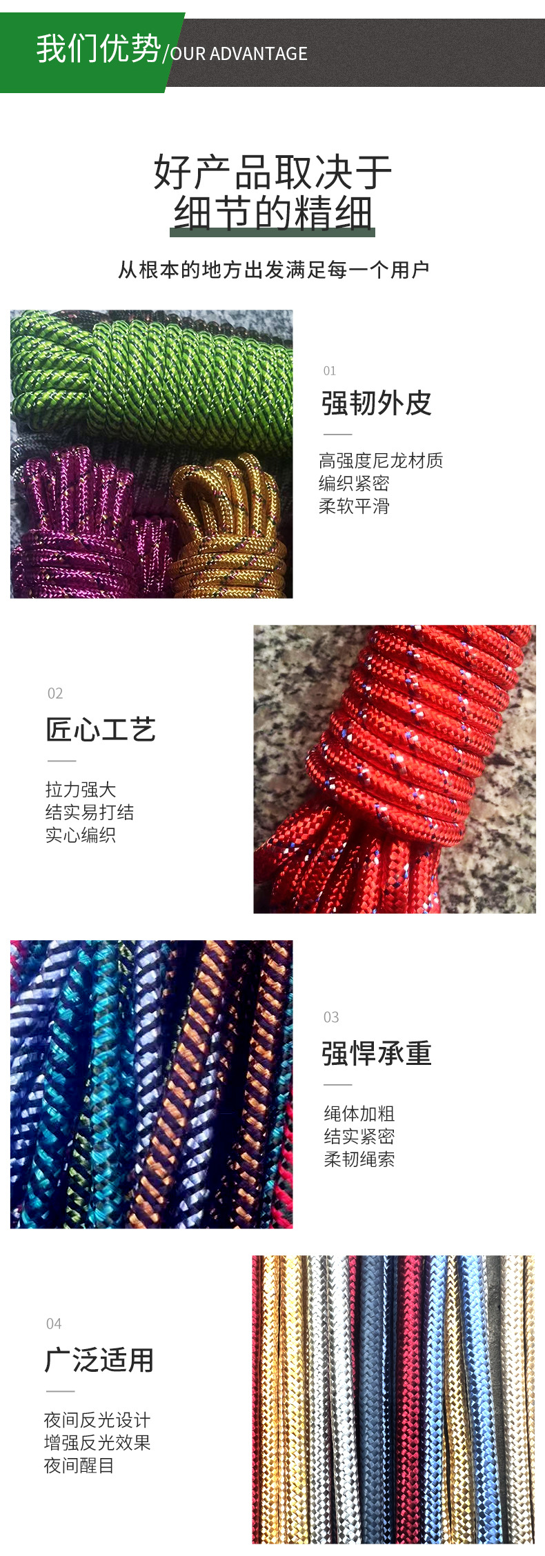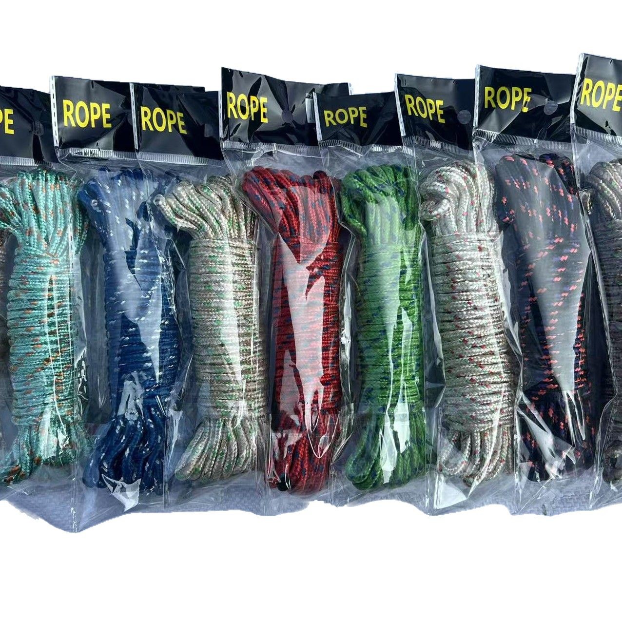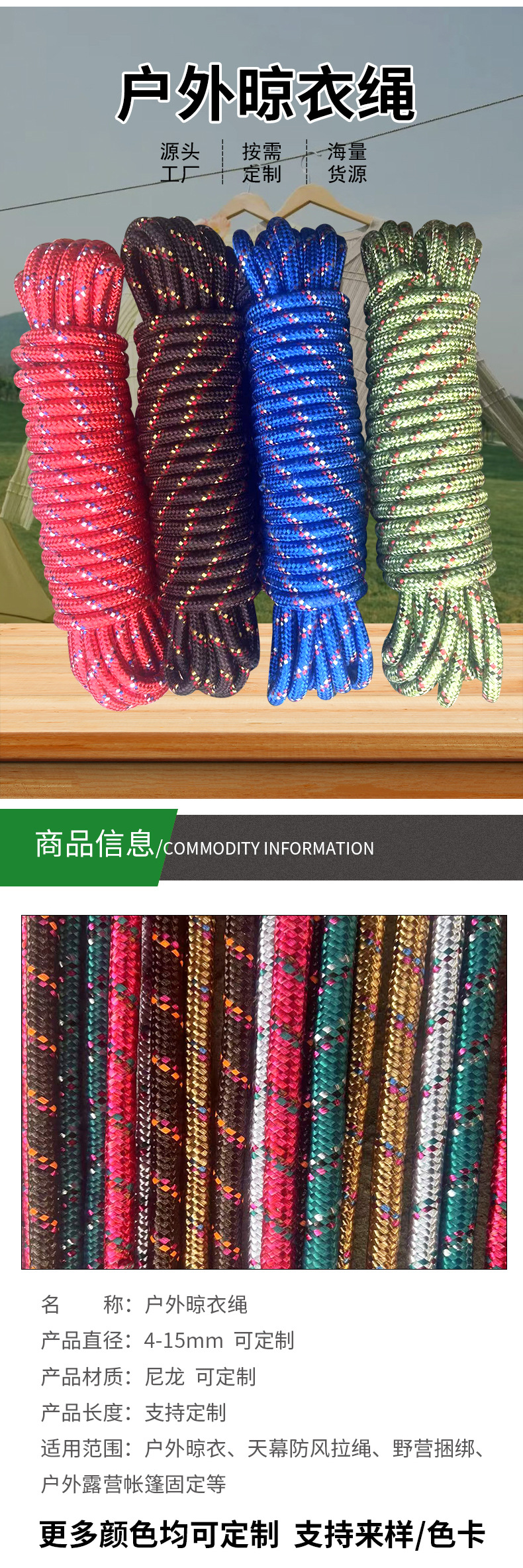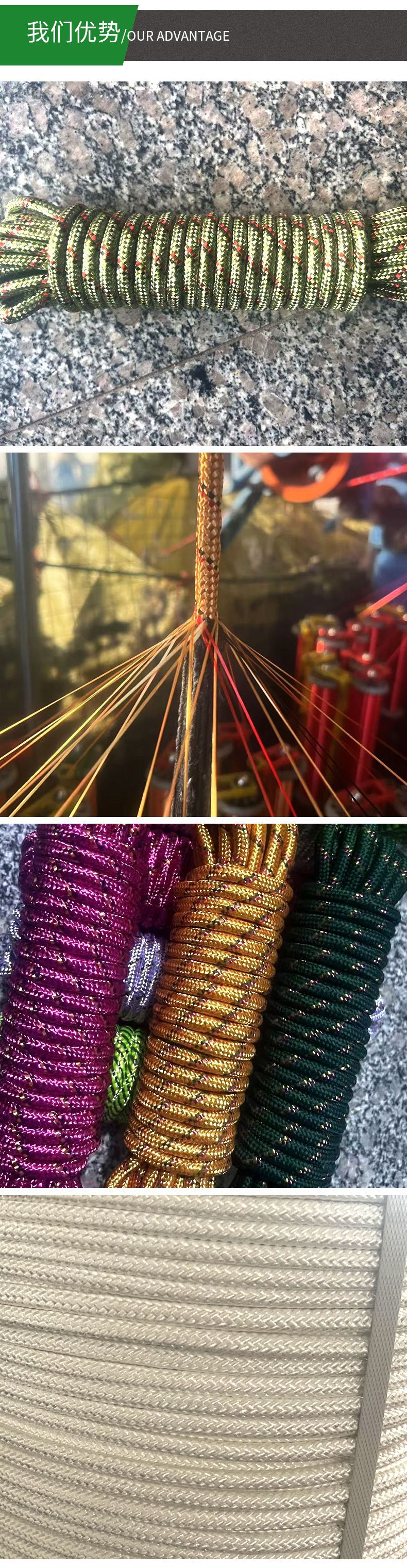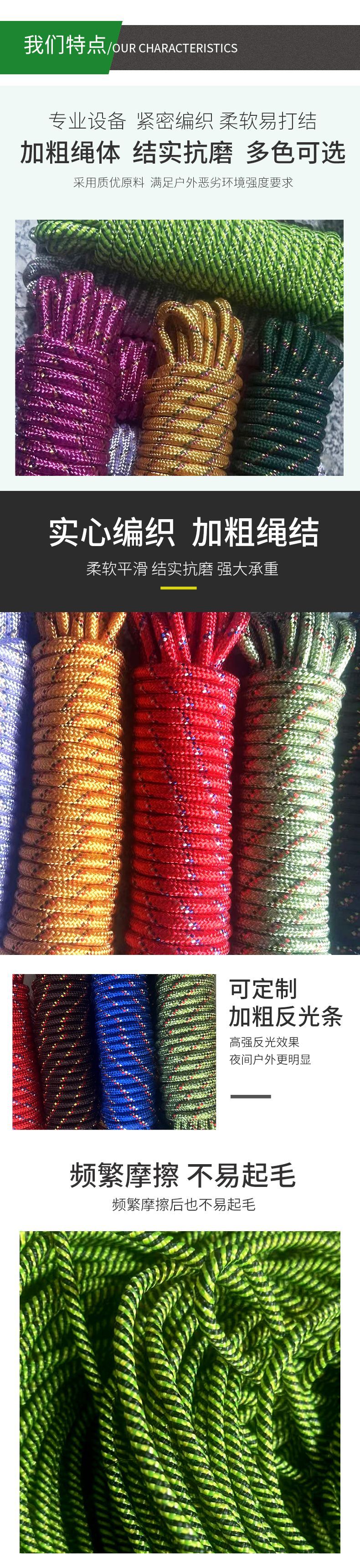 类型: 晾衣绳 货号: 003 主要原料: 涤纶棉线 适用范围: 户外安全绳,挂件绳,户外,晾衣,帐篷风绳 产地: 界首市 品名: 多用绳